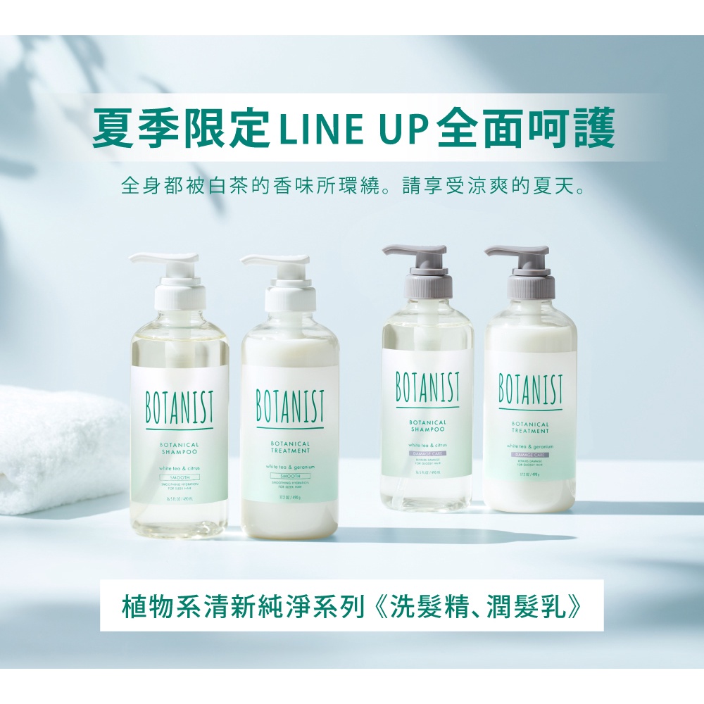 BOTANIST 植物性清爽洗髮精/潤髮乳(清爽柔順型) 490ml|2023年版潤髮乳(清爽柔順型) 白茶&天竺葵|洗髮精(清爽柔順型) 白茶&柑橘ShampooBOTANIST|YOLU|DROAS|KOZI|官方旗艦店
