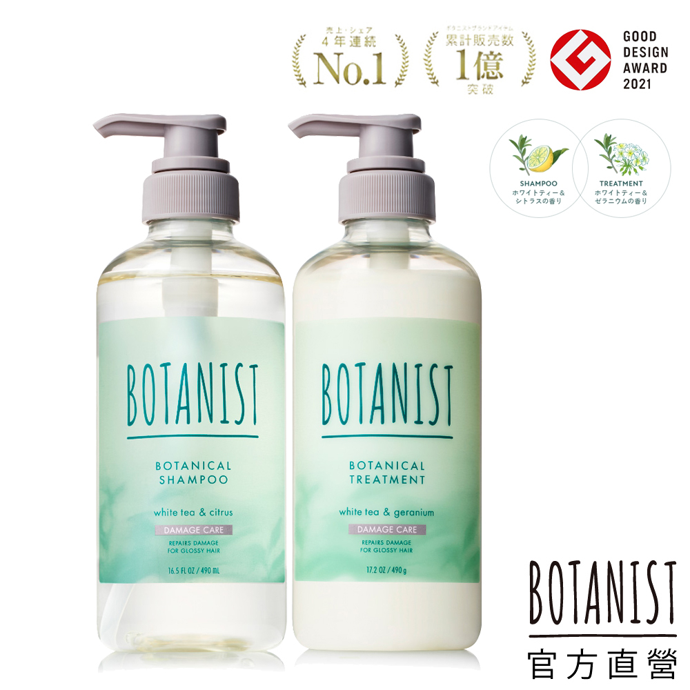 BOTANIST 植物性清爽洗髮精/潤髮乳(受損護理型) 490ml|2023年版 植感空氣瓶洗髮精(受損護理型) 白茶&柑橘|潤髮乳(受損護理型) 白茶&天竺葵ShampooBOTANIST|YOLU|DROAS|KOZI|官方旗艦店