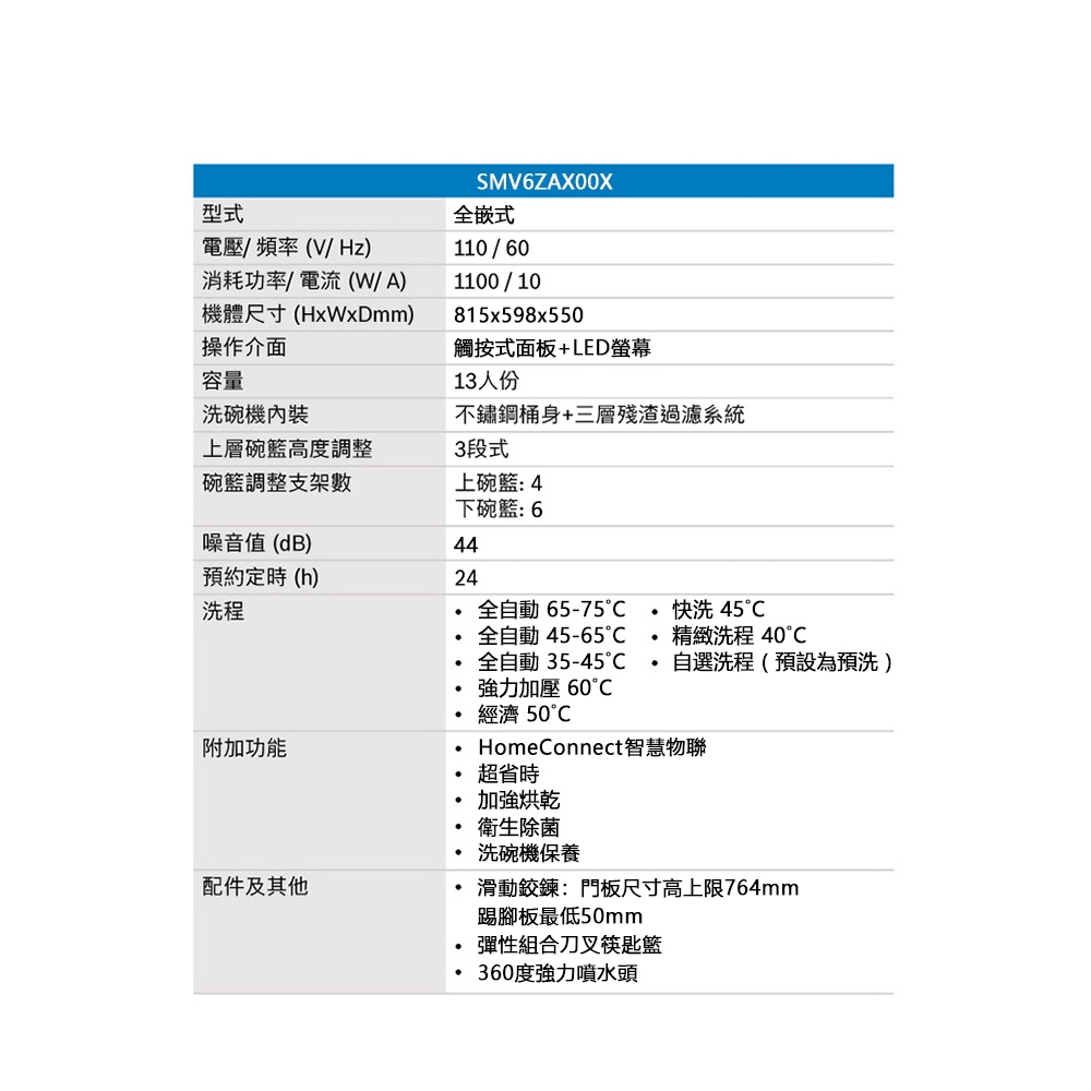 BOSCH 博世 SMV6ZAX00X 13人份 60公分寬 全嵌式沸石洗碗機-不含安裝SMV6ZAX00X|SMV6ZAX00X限時特賣DishwashersBOSCH家電官方旗艦店
