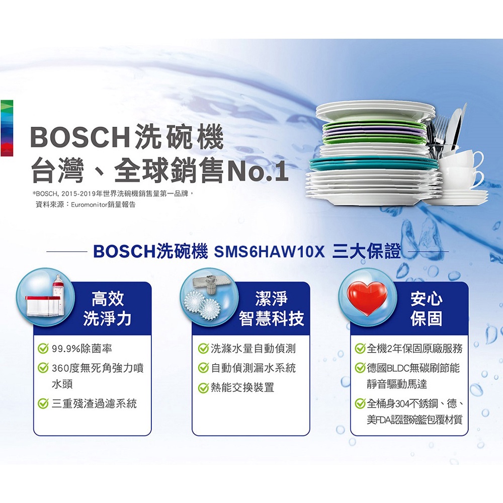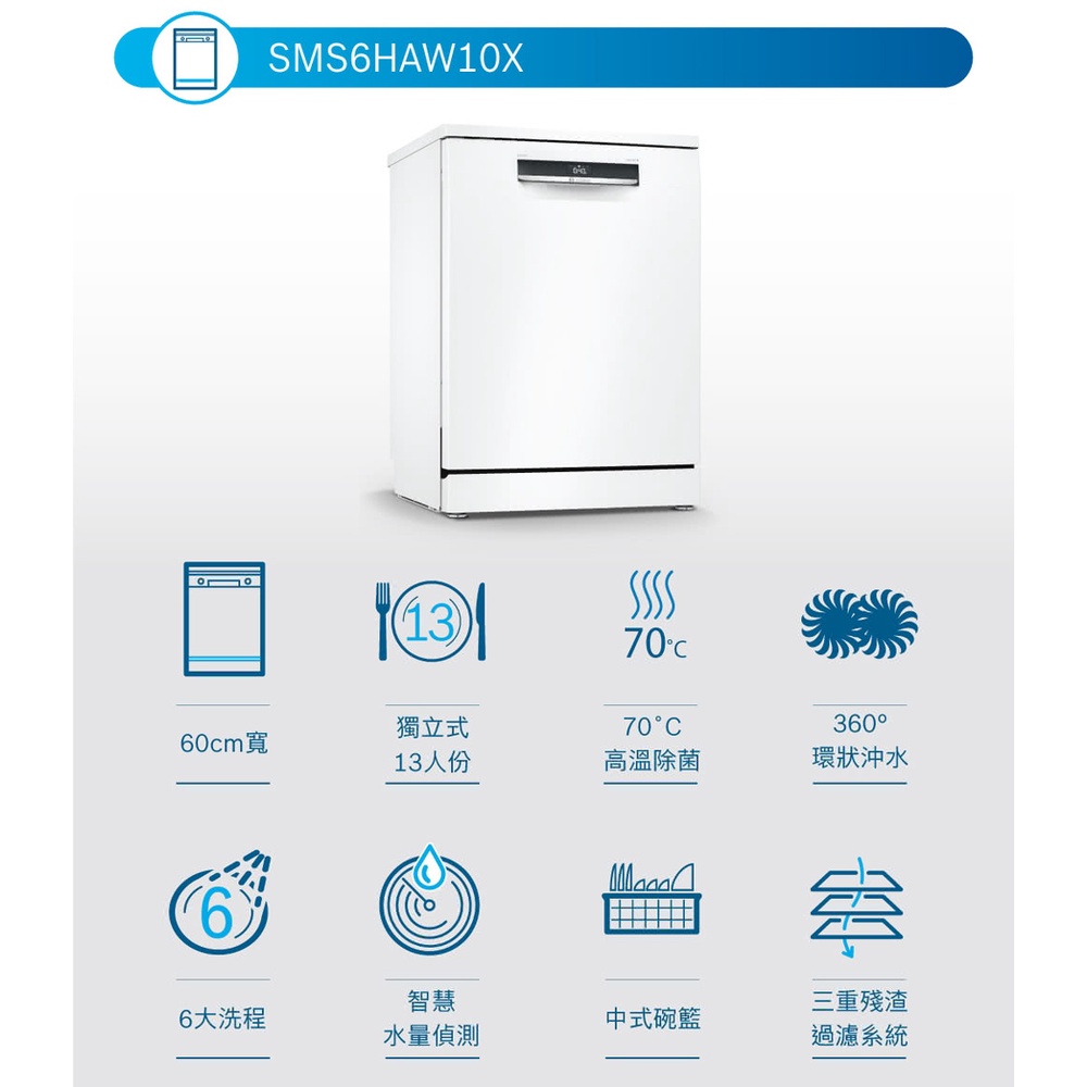 BOSCH 博世 SMS6HAW10X 13人份 60公分寬 獨立式洗碗機