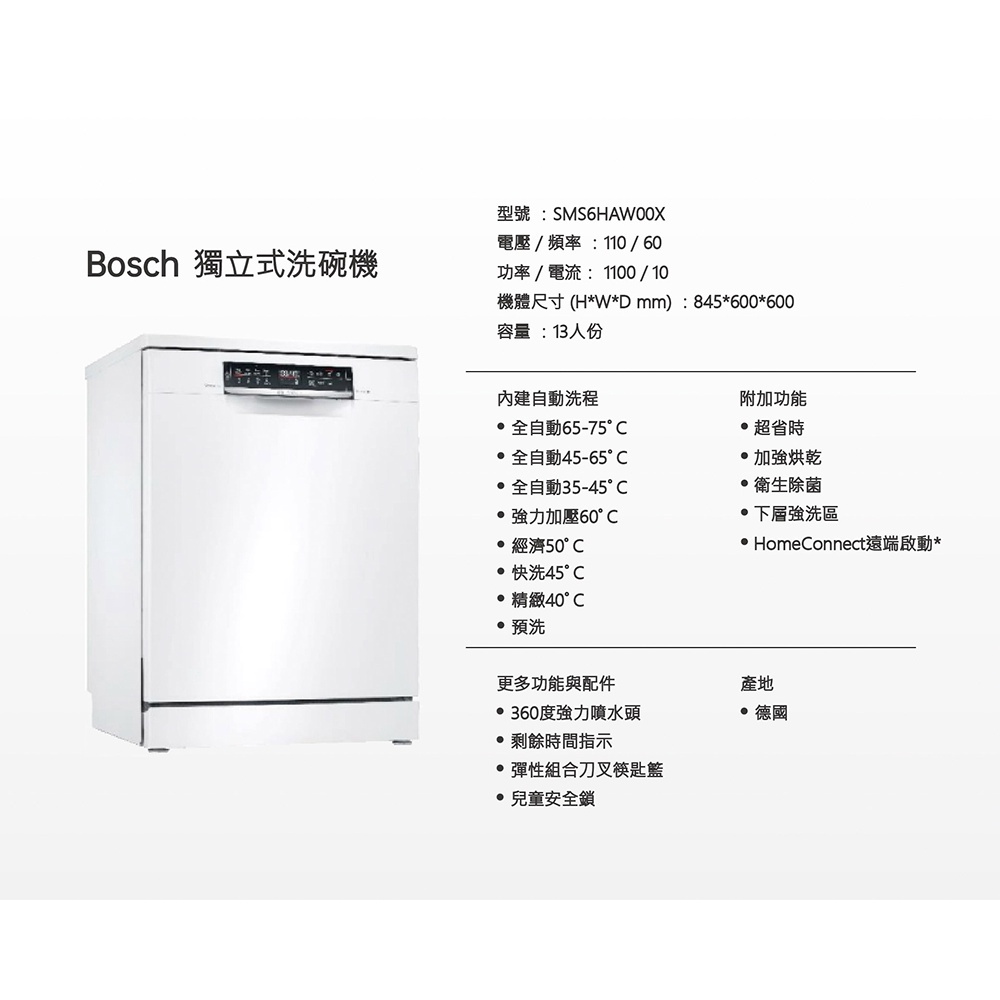 BOSCH 博世 SMS6HAW00X 13人份 60公分寬 獨立式洗碗機Arpha NX8 智慧廚下廚餘機|含基本安裝|不含安裝-加送保養小三組DishwashersBOSCH家電官方旗艦店