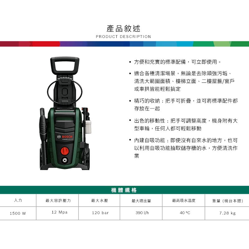 BOSCH 博世 高壓清洗機 UA 125BOSCH 博世 高壓清洗機 UA 125ToolsBOSCH 博世官方授權專賣店