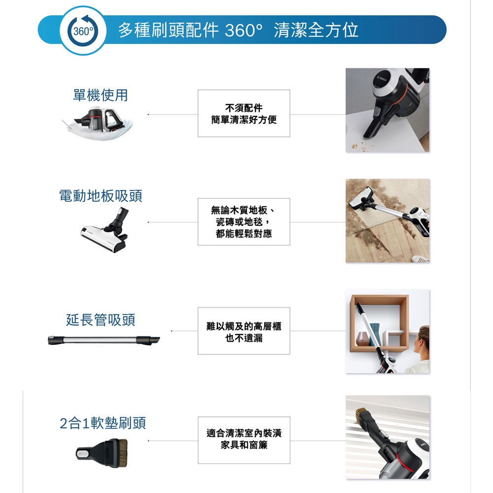 BOSCH 博世 Unlimited S6 BBS611W2TW 輕量多功能手持無線吸塵器 白色 德國製造旗艦版(單機+三吸頭)|單機版Vacuum Cleaners & Floor Care AppliancesBOSCH家電官方旗艦店