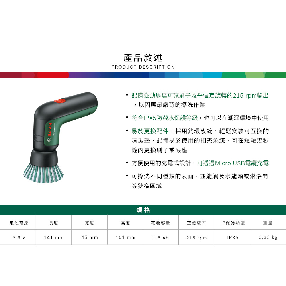 BOSCH 博世 3.6V 電動清潔刷 UniversalBrushBOSCH 博世 3.6V 電動清潔刷 UniversalBrushCleaning BrushesBOSCH 博世官方授權專賣店