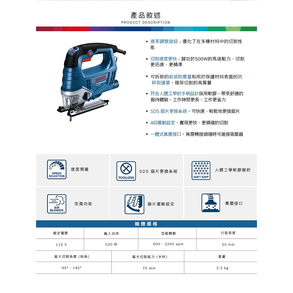 BOSCH 博世 520W快拆式可調速線鋸機 GST 750BOSCH 博世 520W快拆式可調速線鋸機 GST 750ToolsBOSCH 博世官方授權專賣店