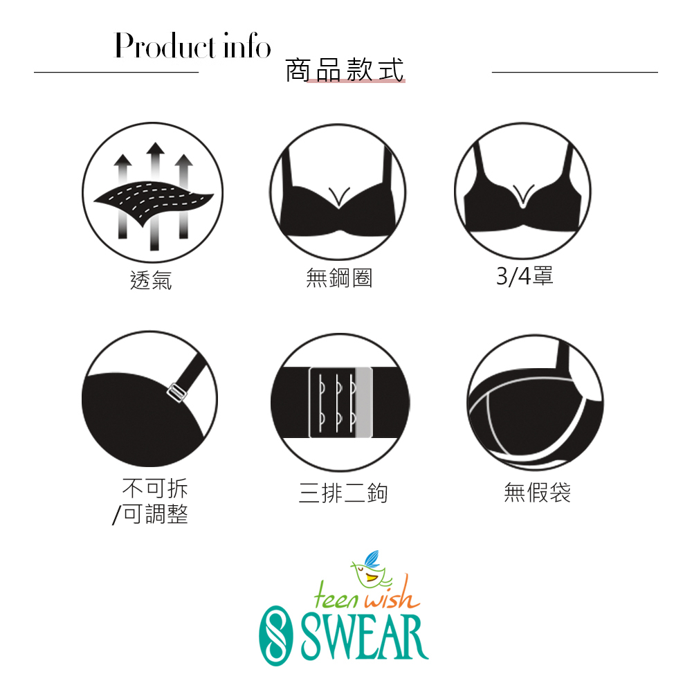 SWEAR 思薇爾 粉愛妮系列 A-B罩 無鋼圈 素面 包覆 女內衣 (水漾綠)B075|B080|B085|A065|A070|A075|A080|B070Bras SWEAR思薇爾_官方直營