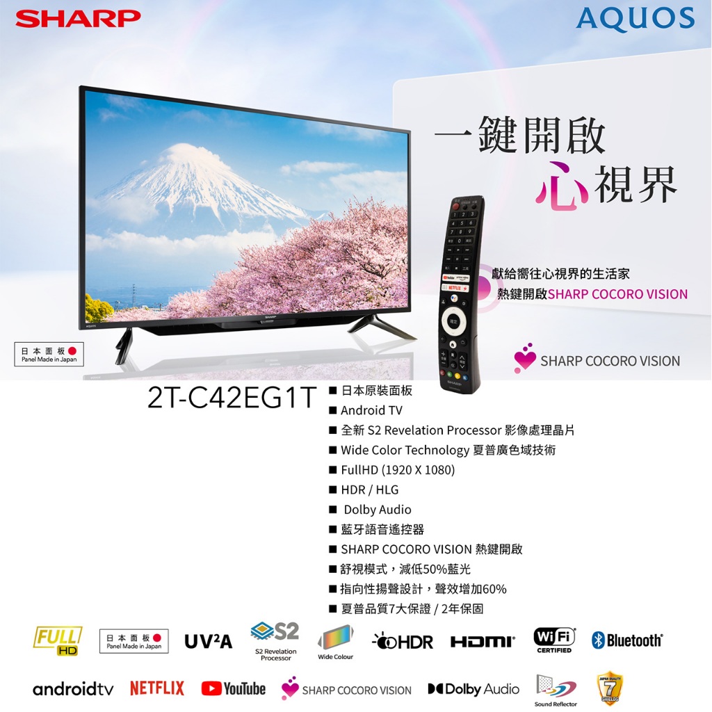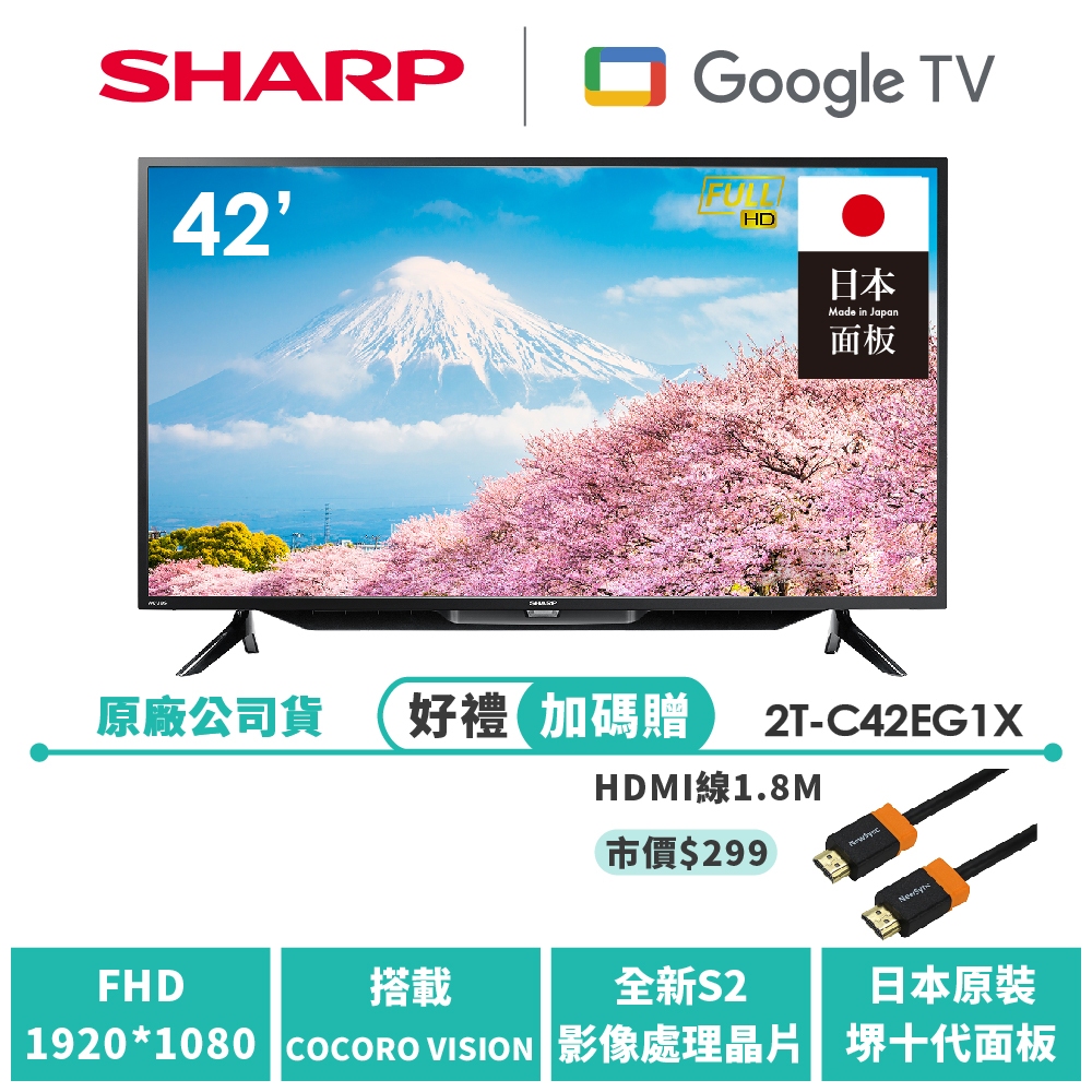 【SHARP夏普】FHD智慧連網液晶顯示器 2T-C42EG1X 42吋限時特賣 2T-C42EG1X|2T-C42EG1XTVs SHARP 夏普旗艦館