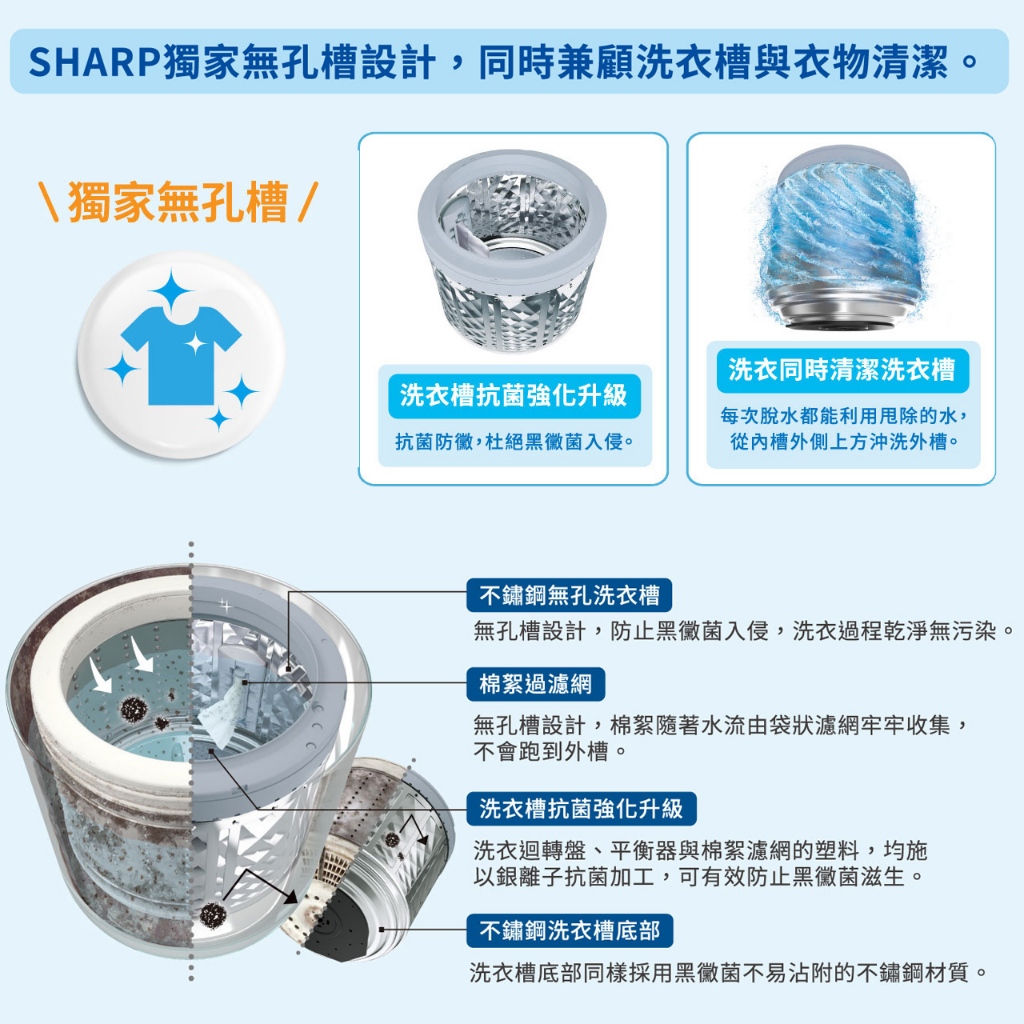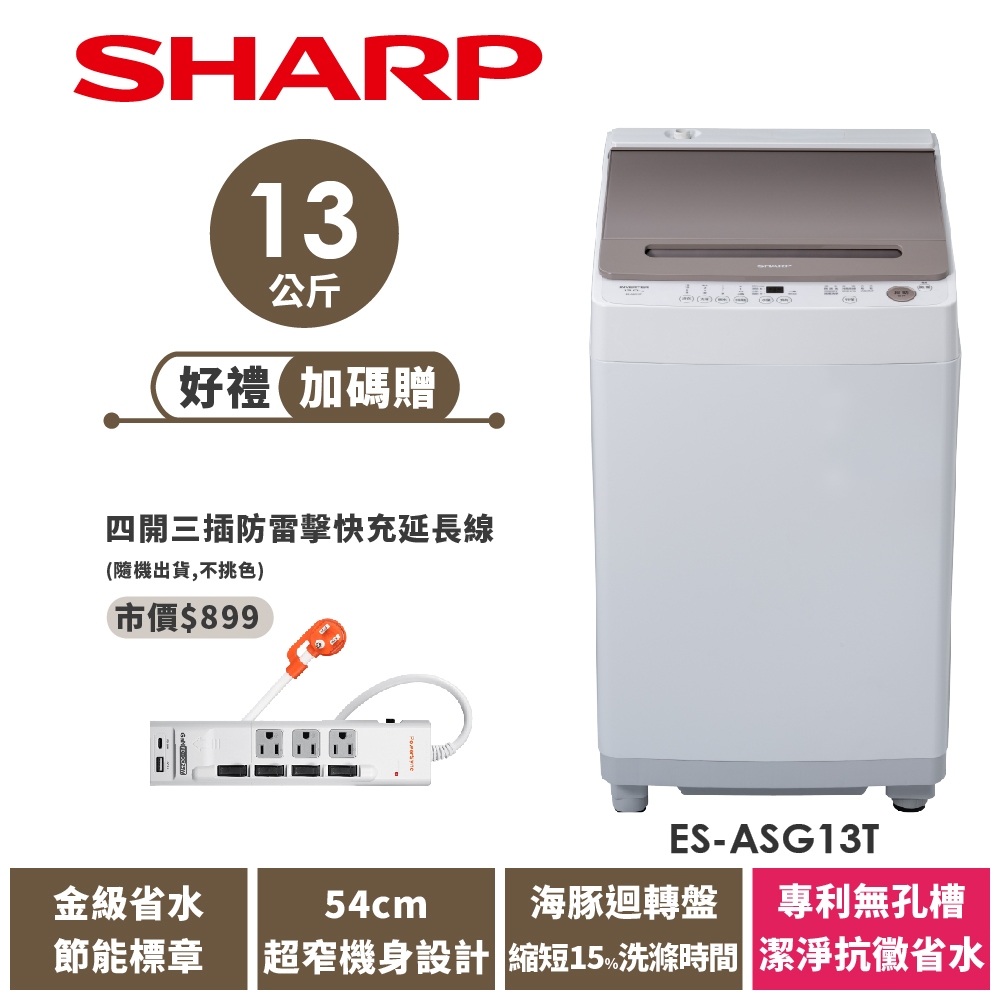 【SHARP夏普】13公斤 無孔槽抗菌變頻洗衣機 ES-ASG13T限時特賣 ES-ASG13T|ES-ASG13TWashing Machines & Dryers SHARP 夏普旗艦館