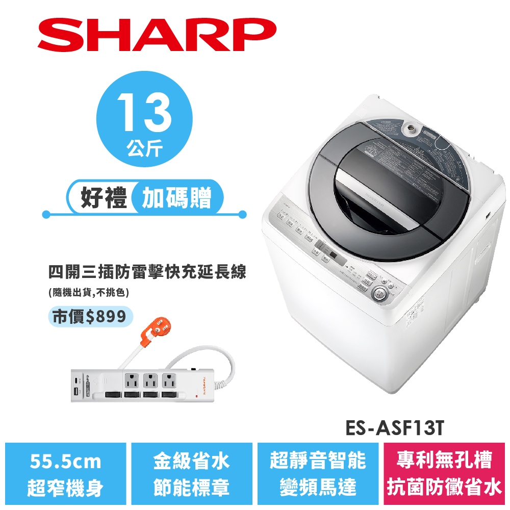 【SHARP夏普】13公斤 無孔槽變頻洗衣機 ES-ASF13T限時特賣|ES-ASF13T|ES-ASF13TWashing Machines & Dryers SHARP 夏普旗艦館