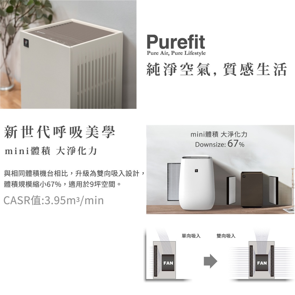【SHARP夏普】Purefit空氣美學機|迷你方空氣清淨機 FU-S40T-T 9坪 小茶棕 送花漾彩瓷碗匙組FU-S40T-T小茶棕Air Treatment SHARP 夏普旗艦館