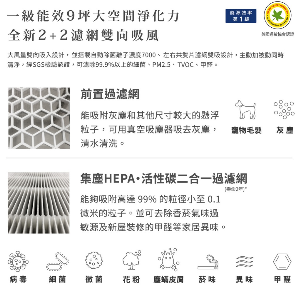 【SHARP夏普】抗敏空氣清淨機 香草白 FU-H40T-W 9坪限時特賣FU-H40T-W|FU-H40T-WAir Treatment SHARP 夏普旗艦館