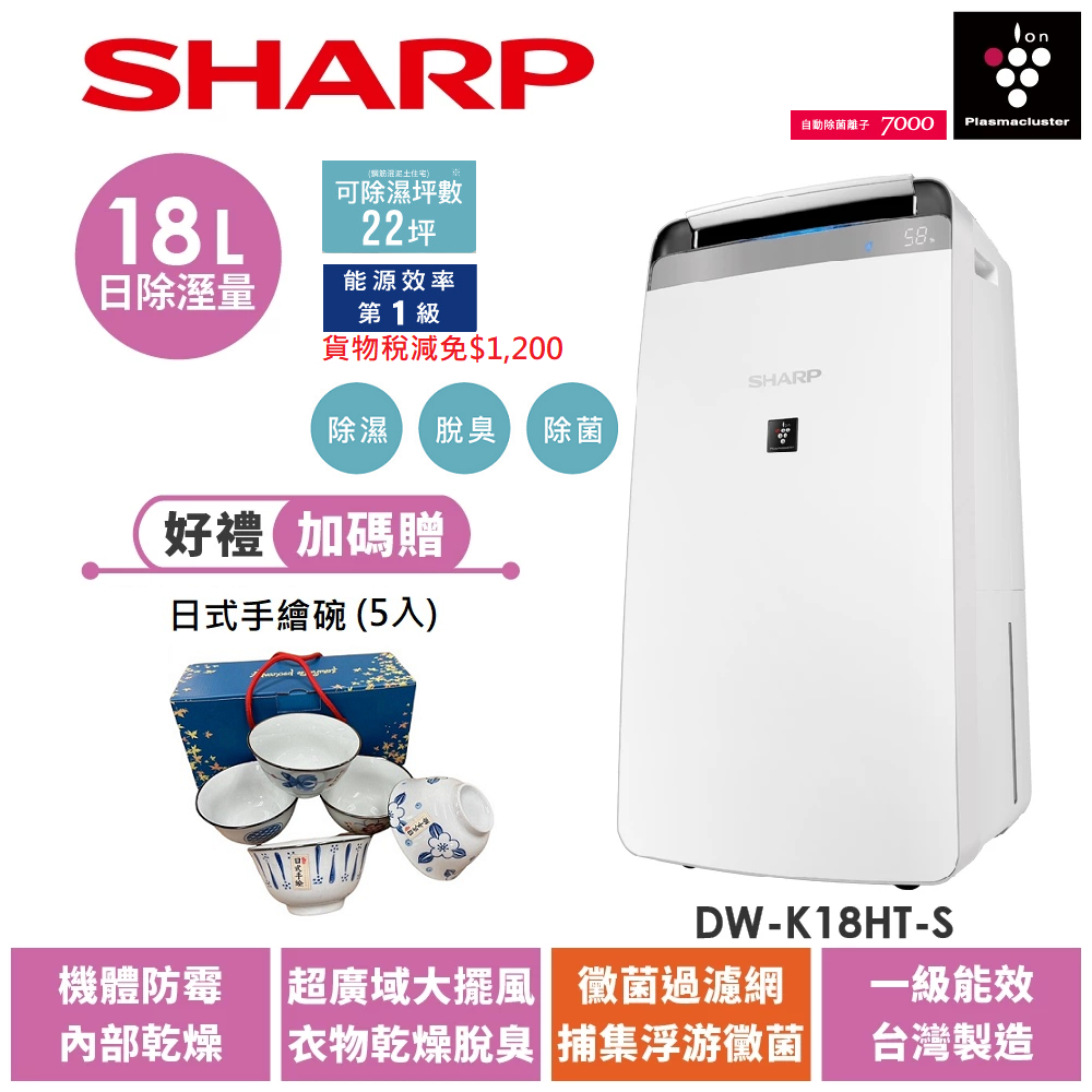 【SHARP夏普】DW-K18HT-S 自動除菌離子衣物乾燥抗黴除濕機/18L星耀銀 可申請貨物稅減免$1200限時特賣 DW-K18HT-S|DW-K18HT-SAir Treatment SHARP 夏普旗艦館
