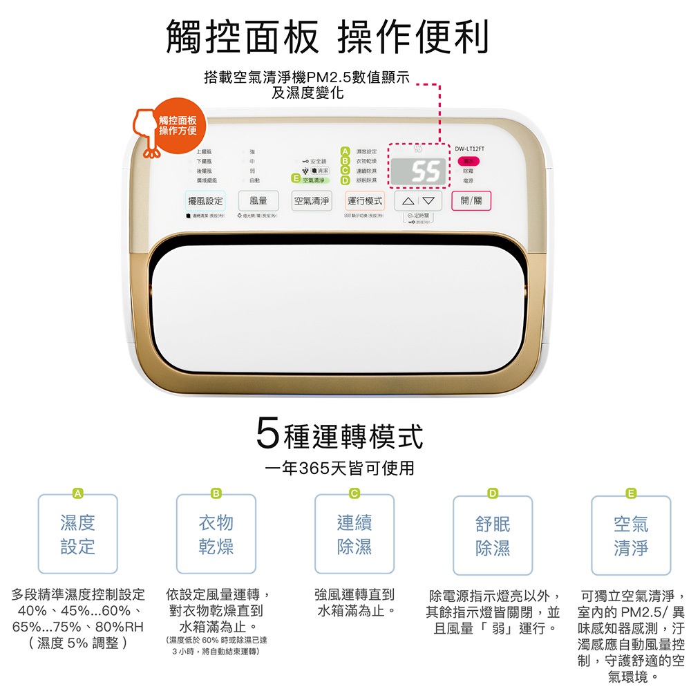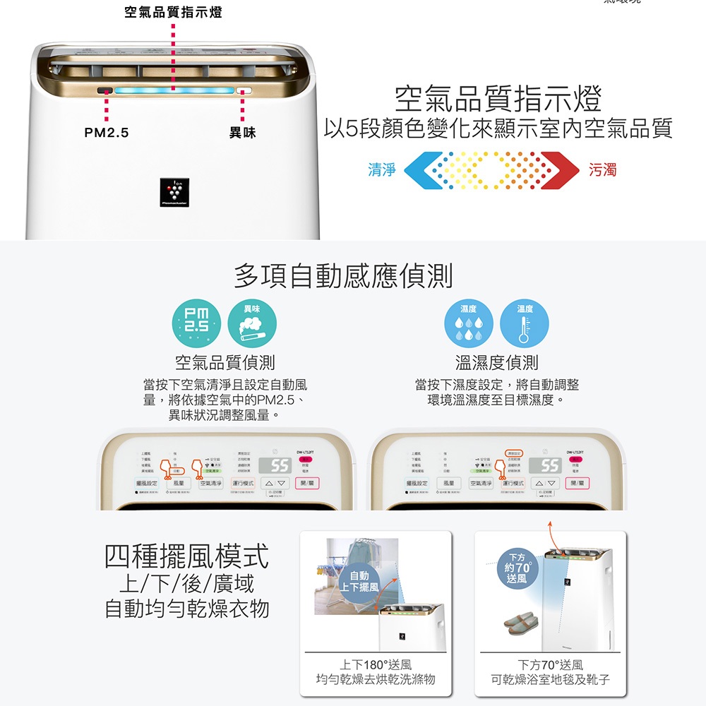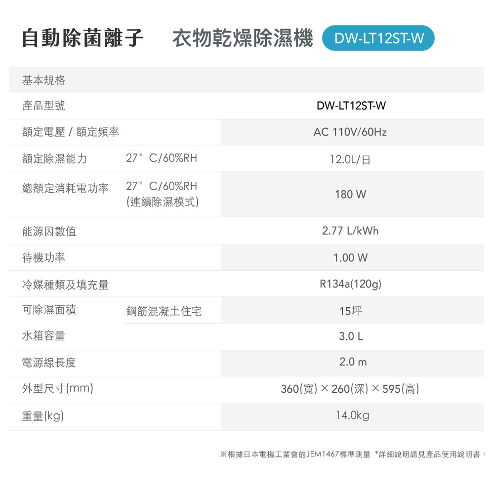 【SHARP夏普】12L 自動除菌離子2合1空氣清淨除濕機 DW-LT12FT-W 送壁插