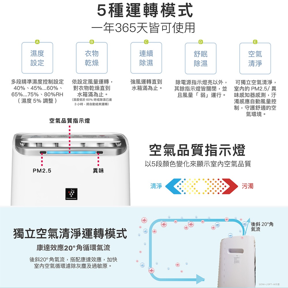 【SHARP夏普】10.5L 自動除菌離子2合1空氣清淨除濕機 DW-LT10FT-W限時特賣 DW-LT10FT-W|DW-LT10FT-WAir Treatment SHARP 夏普旗艦館