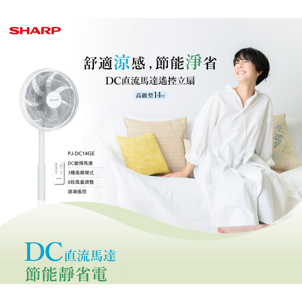 【SHARP夏普】14吋 高級型 DC直流馬達立扇 PJ-DC14GEPJ-DC14GE|限時特賣| PJ-DC14GECooling SHARP 夏普旗艦館