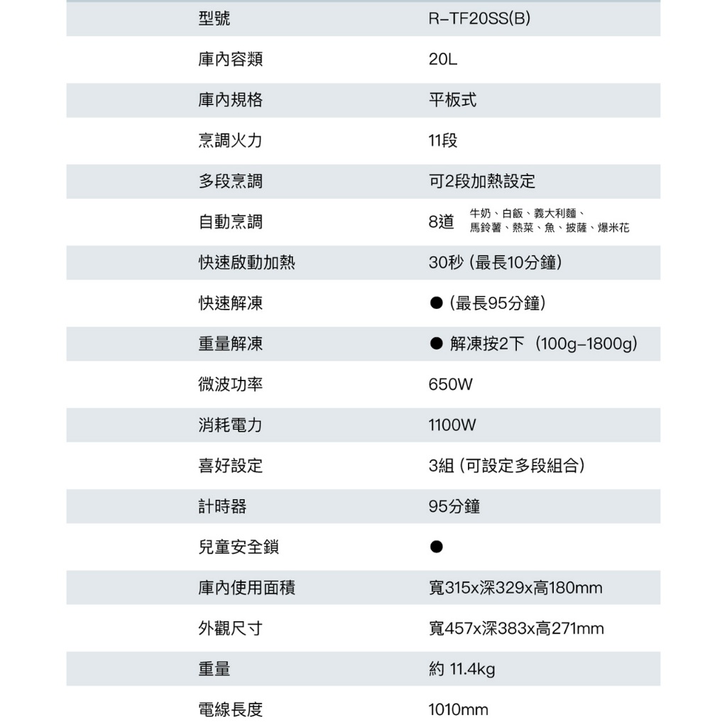 【SHARP夏普】平板式微電腦微波爐 R-TF20SS(B) 20L 送隔熱手套
