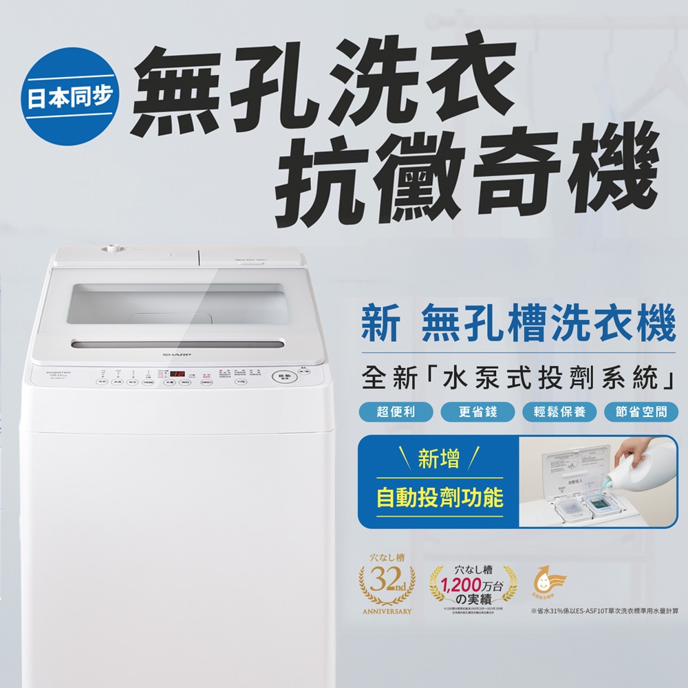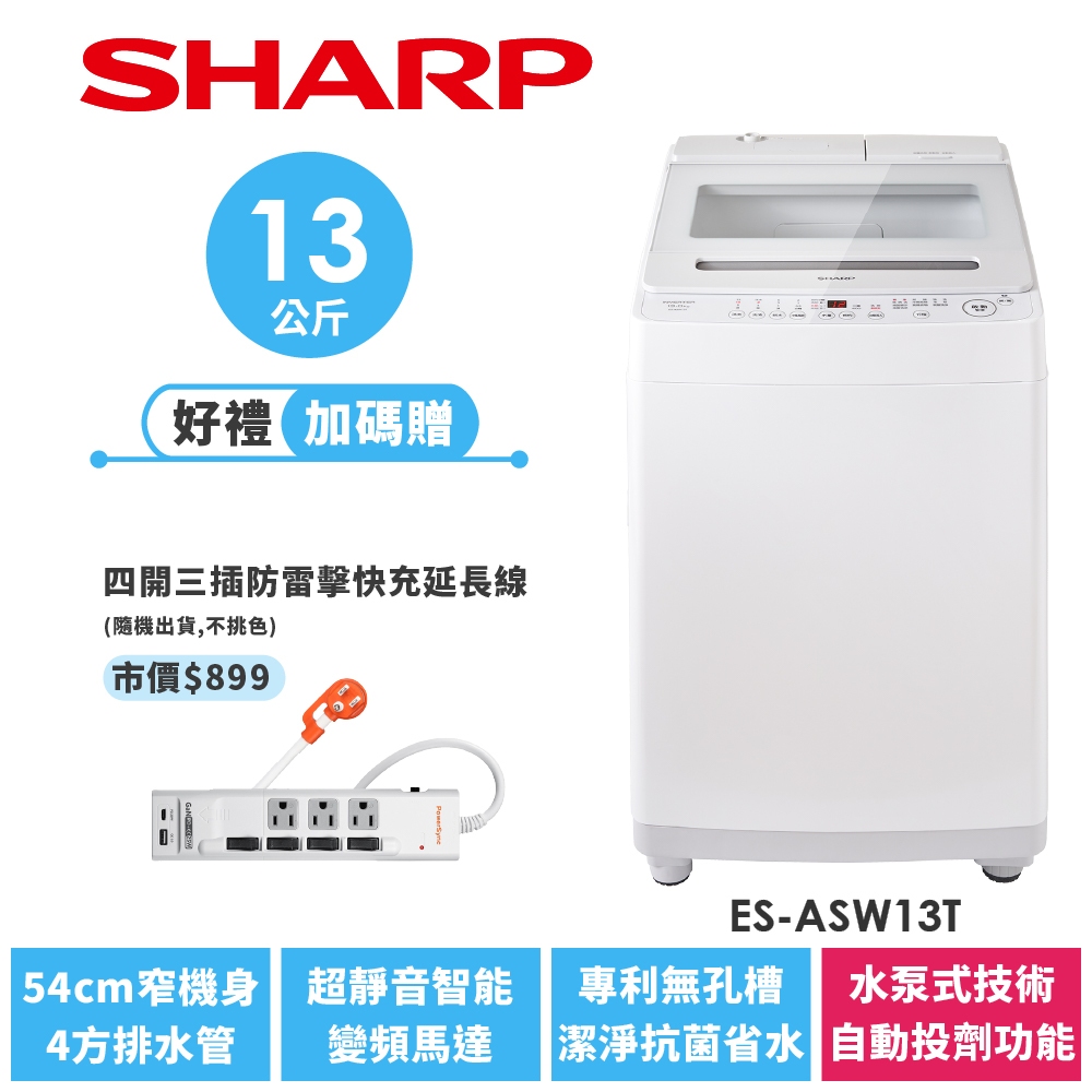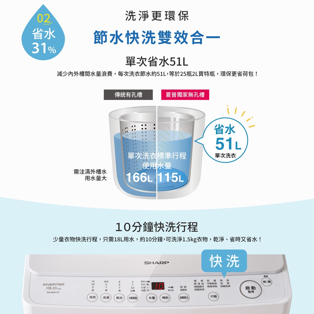 【SHARP夏普】13公斤 自動投劑無孔槽變頻洗衣機 ES-ASW13T限時特賣|ES-ASW13T|ES-ASW13TWashing Machines & Dryers SHARP 夏普旗艦館