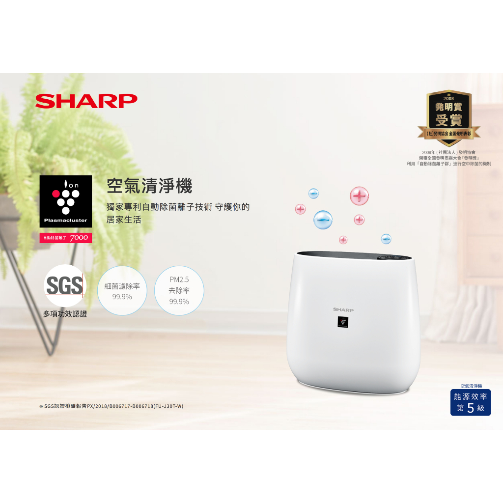 【SHARP夏普】自動除菌離子空氣清淨機 FU-J30T-W 7坪 送防雷擊節能壁插限時特賣 FU-J30T-W|FU-J30T-WAir Treatment SHARP 夏普旗艦館
