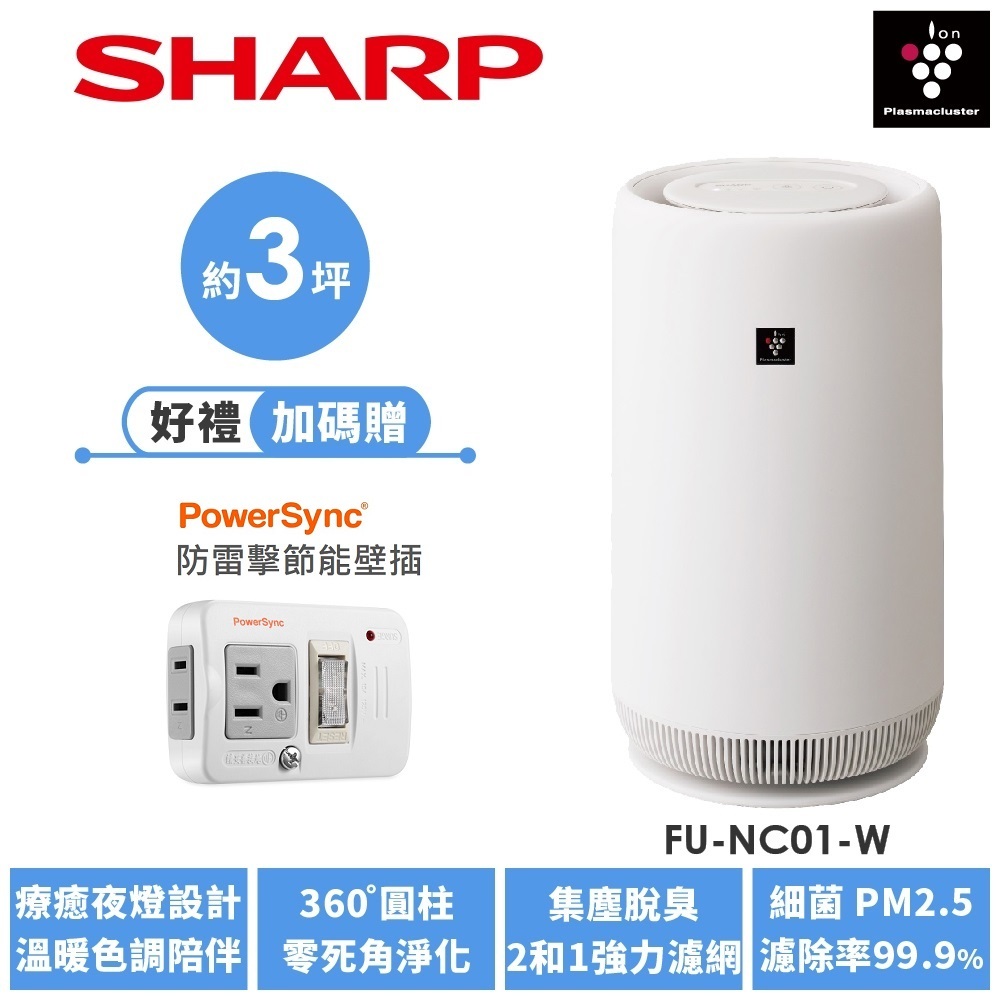 【SHARP夏普】 360度呼吸圓柱空氣清淨機 FU-NC01-W 3坪 送防雷擊節能壁插限時特賣 FU-NC01-W|FU-NC01-WAir Treatment SHARP 夏普旗艦館