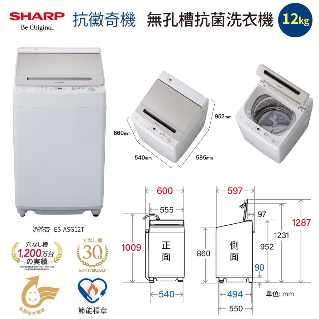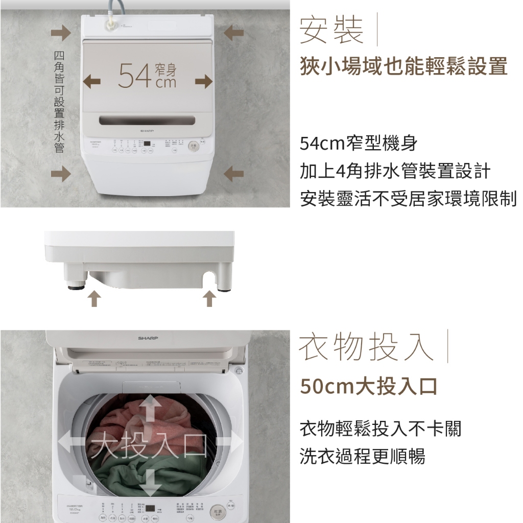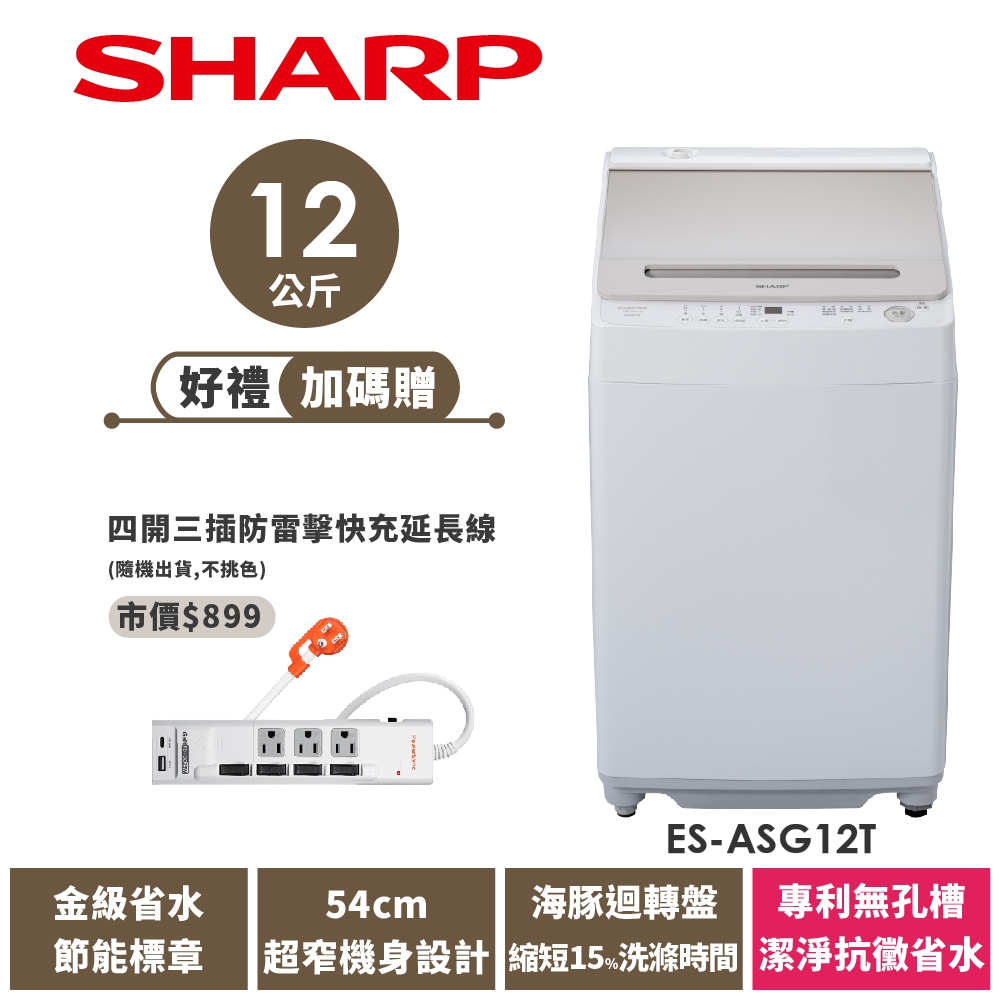 【SHARP夏普】12公斤 無孔槽抗菌變頻洗衣機 ES-ASG12T限時特賣|ES-ASG12T|ES-ASG12TWashing Machines & Dryers SHARP 夏普旗艦館
