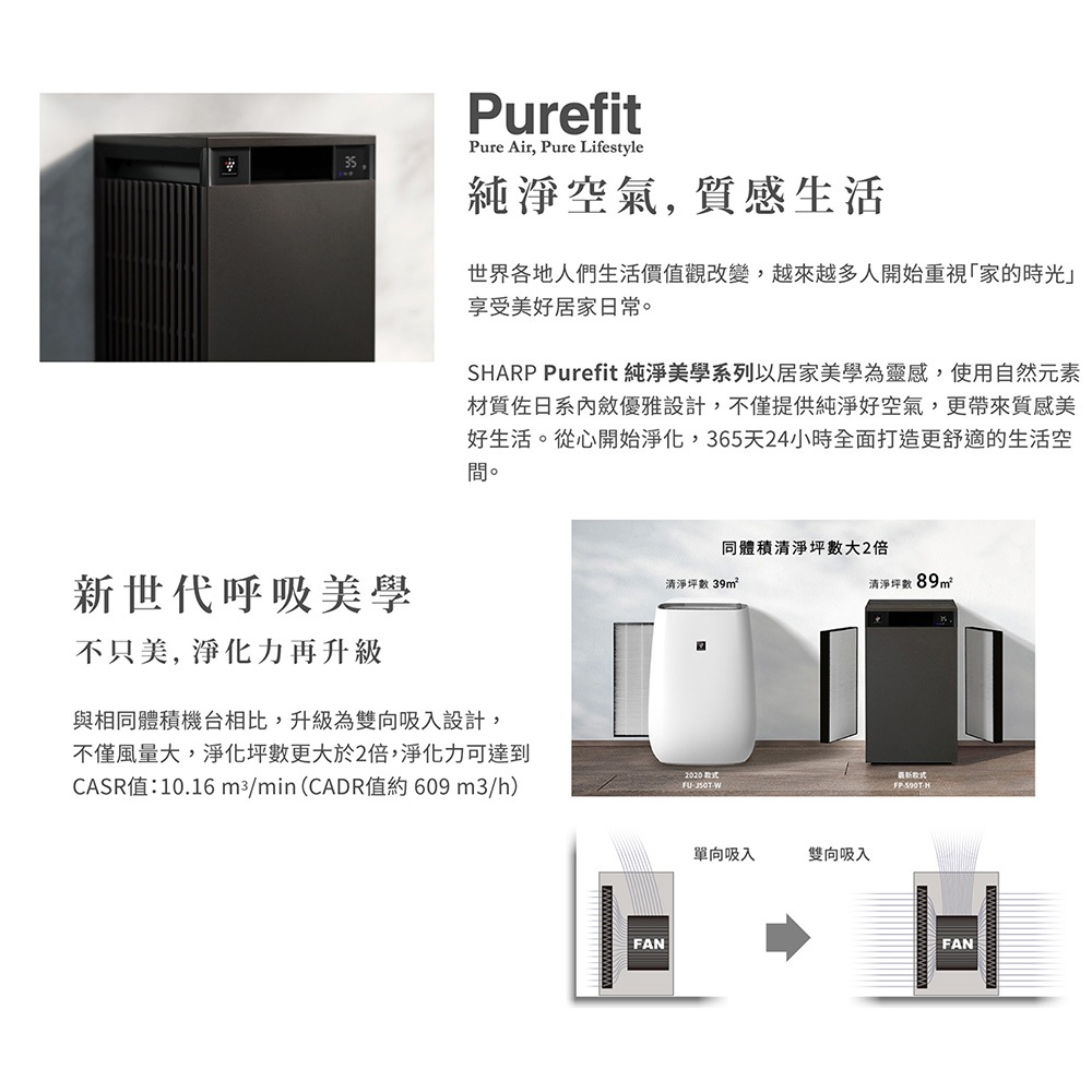 【SHARP夏普】AIoT智慧空氣清淨機 FP-S90T-H 27坪 檀木黑 送雪白雙鍋組限時特賣 FP-S90T-H|FP-S90T-HAir Treatment SHARP 夏普旗艦館