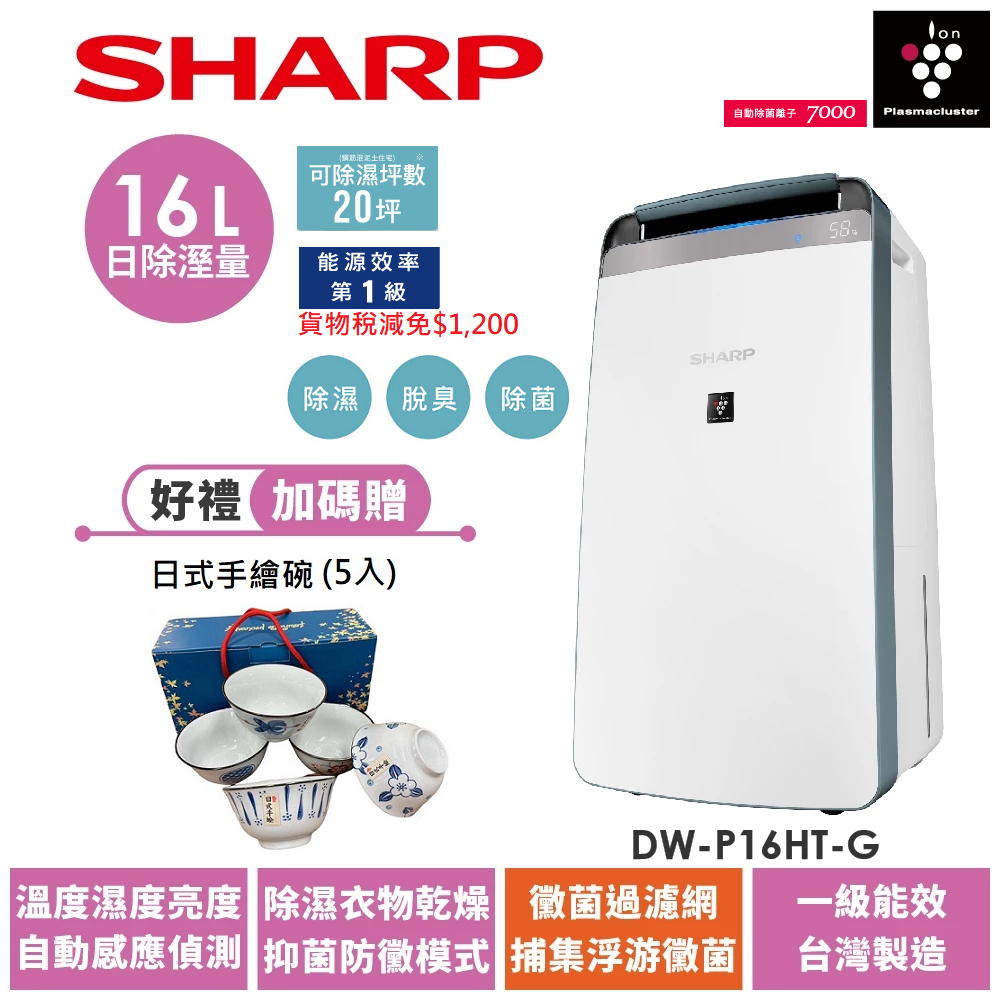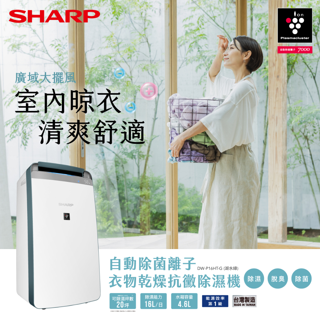 【SHARP夏普】DW-P16HT-G 自動除菌離子衣物乾燥抗黴除濕機/16L湖水綠 可申請貨物稅減免$1200限時特賣 DW-P16HT-G|DW-P16HT-GAir Treatment SHARP 夏普旗艦館