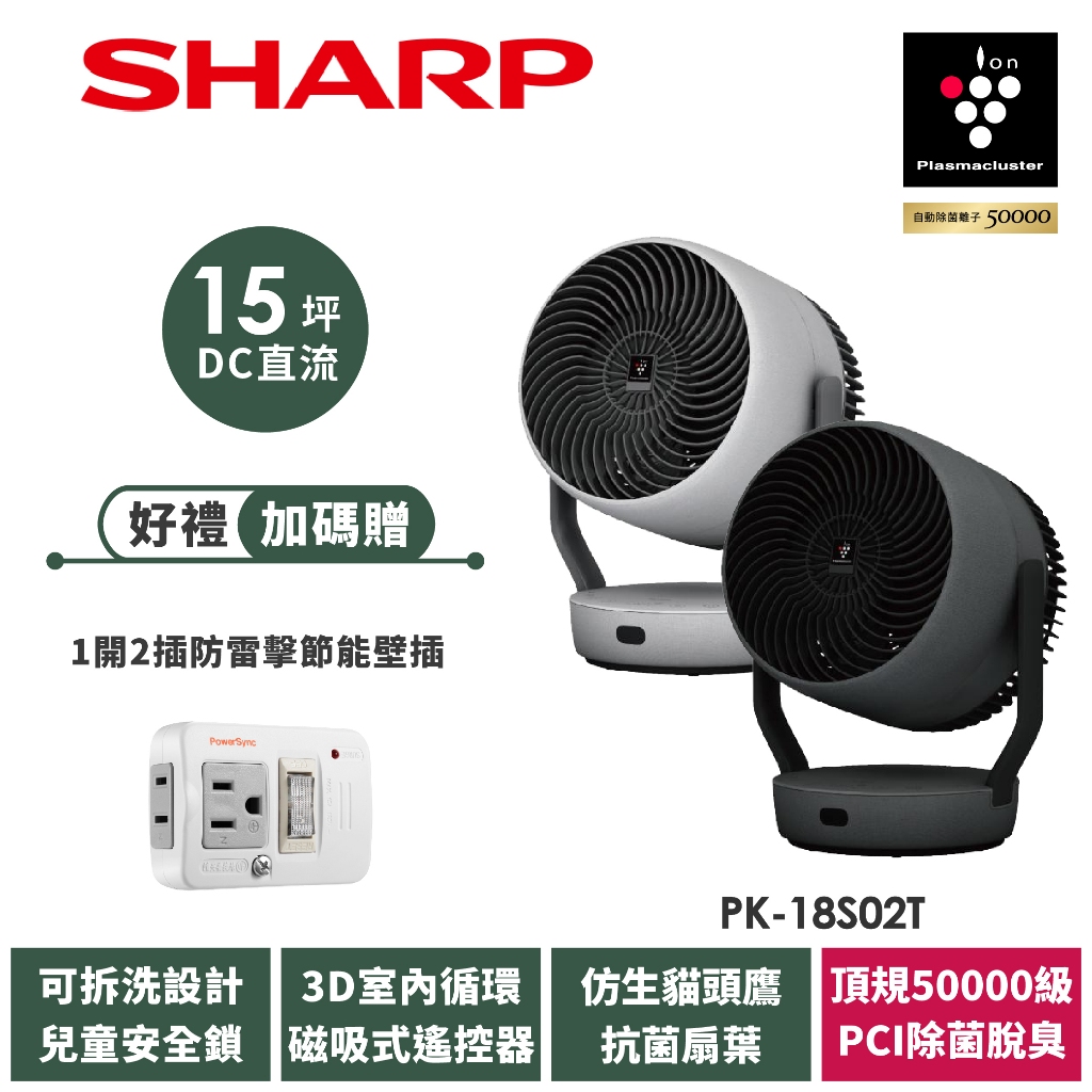【SHARP夏普】PK-18S02T 《森呼吸》自動除菌離子3D清淨循環扇PK-18S02T-H 月岩灰|PK-18S02T-B 星耀黑|限時特賣|PK-18S02T-H 月岩灰|限時特賣|PK-18S02T-B 星耀黑Cooling SHARP 夏普旗艦館