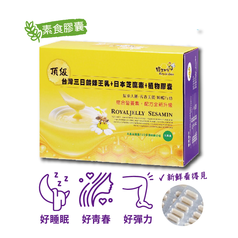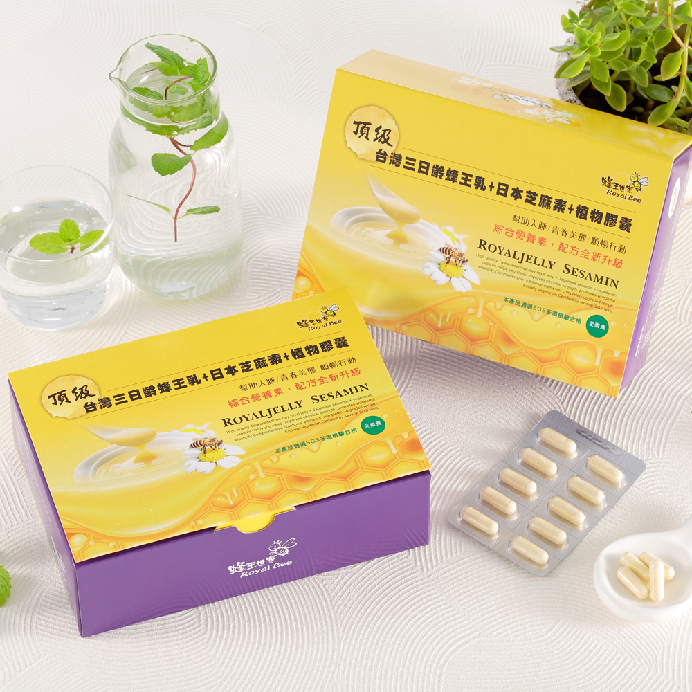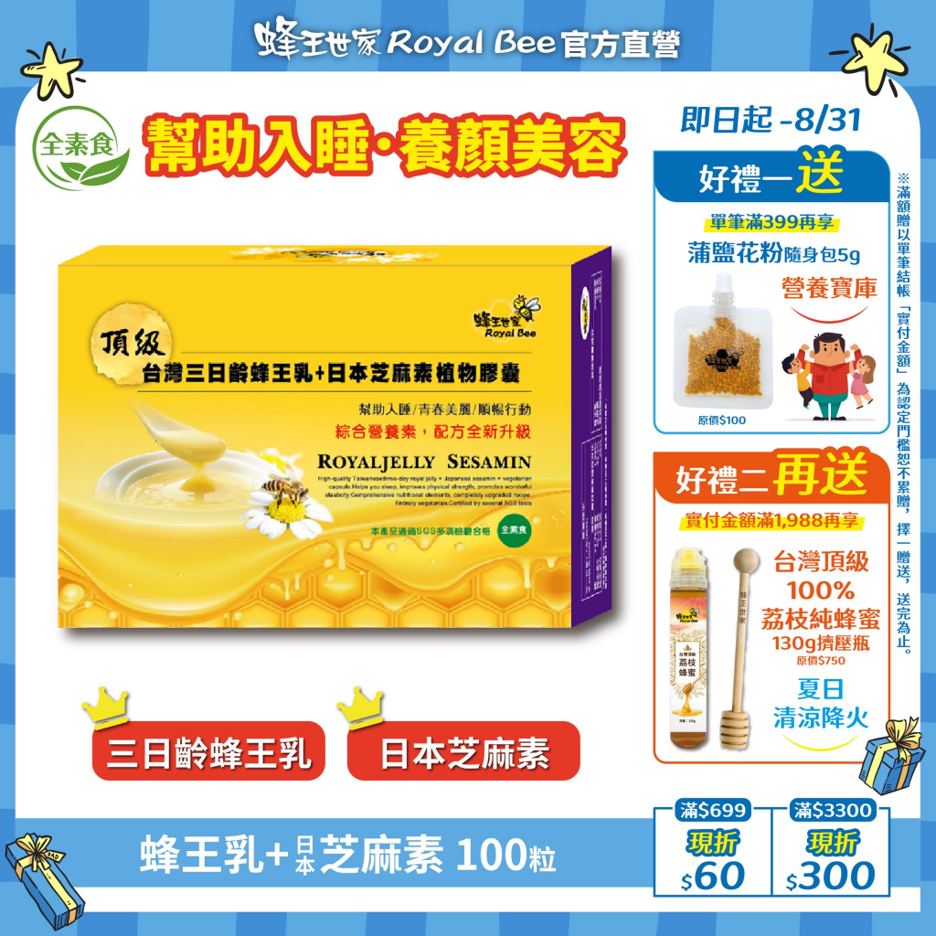 【蜂王世家】頂級三日齡蜂王乳+日本芝麻素(素食)膠囊100粒/最新效期/現貨/幫助睡眠/熱銷19年/配方升級/送禮50粒體驗鋁箔包|超值300粒禮盒組/送禮自用|100粒盒裝/送禮|100粒盒裝2入組/Well Being Royal Bee 蜂王世家
