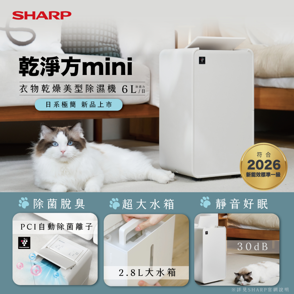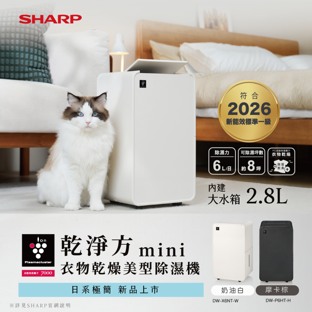 【SHARP夏普】6L乾淨方mini美型除濕機 DW-X6NT-W 奶油白限時特賣DW-X6NT-W|DW-X6NT-WAir Treatment SHARP 夏普旗艦館
