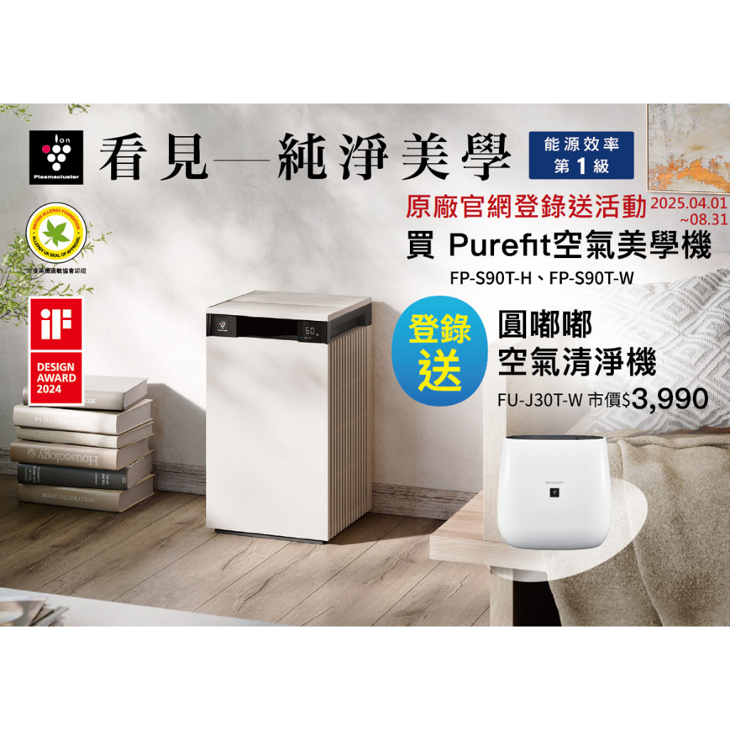 【SHARP夏普】AIoT智慧空氣清淨機 FP-S90T-W 27坪 奶油白 送雪白雙鍋組限時特賣 FP-S90T-W|FP-S90T-WAir Treatment SHARP 夏普旗艦館