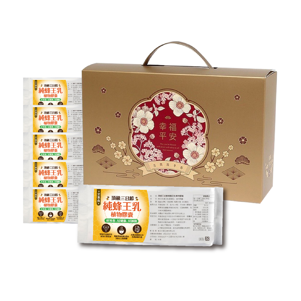 【蜂王世家】頂級三日齡純蜂王乳植物膠囊100粒/現貨/幫助睡眠/全素食/熱銷19年/成分單純/開工/招財/母親節送禮300粒禮盒裝/囤貨/送禮佳品|50粒體驗鋁箔包/無盒|100粒盒裝/送禮佳品Well Being Royal Bee 蜂王世家
