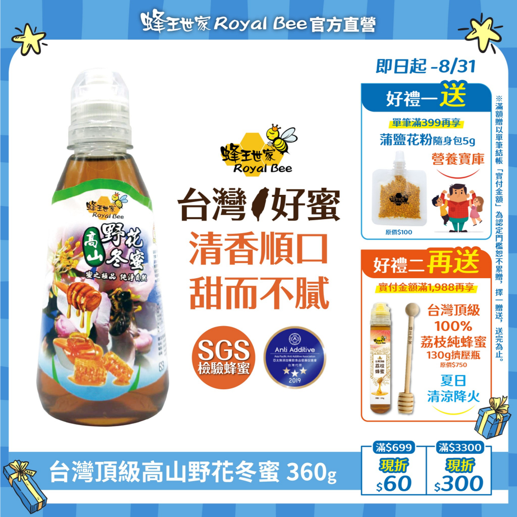 【蜂王世家】頂級高山野花冬蜜系列/國際無添加認證/蜜中極品/養生飲品/開工/招財/送禮/新春/送禮/降火頂級高山野花冬蜜360g|頂級高山野花冬蜜800g單罐|頂級高山野花冬蜜/兩瓶800g提盒組|4種風味130g蜂蜜綜合組/隨身瓶|4種風味360g蜂蜜綜合組Honey & Maple Syrups Royal Bee 蜂王世家