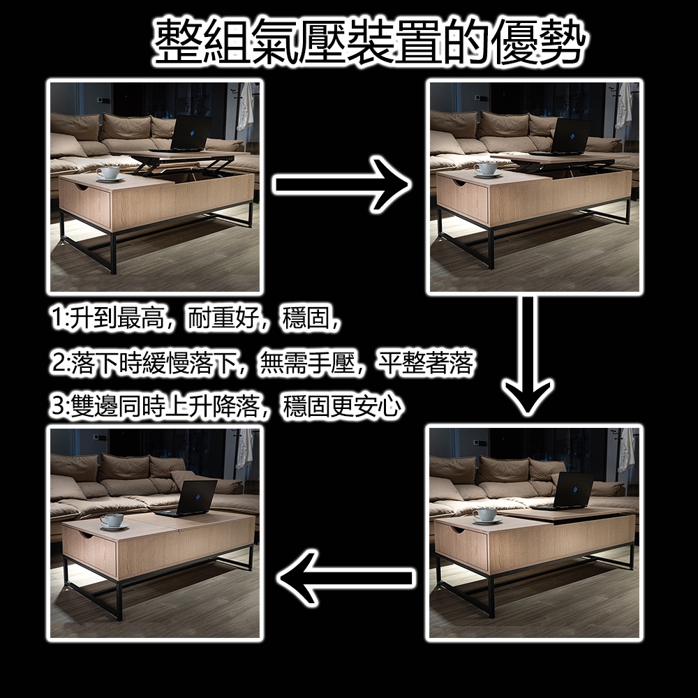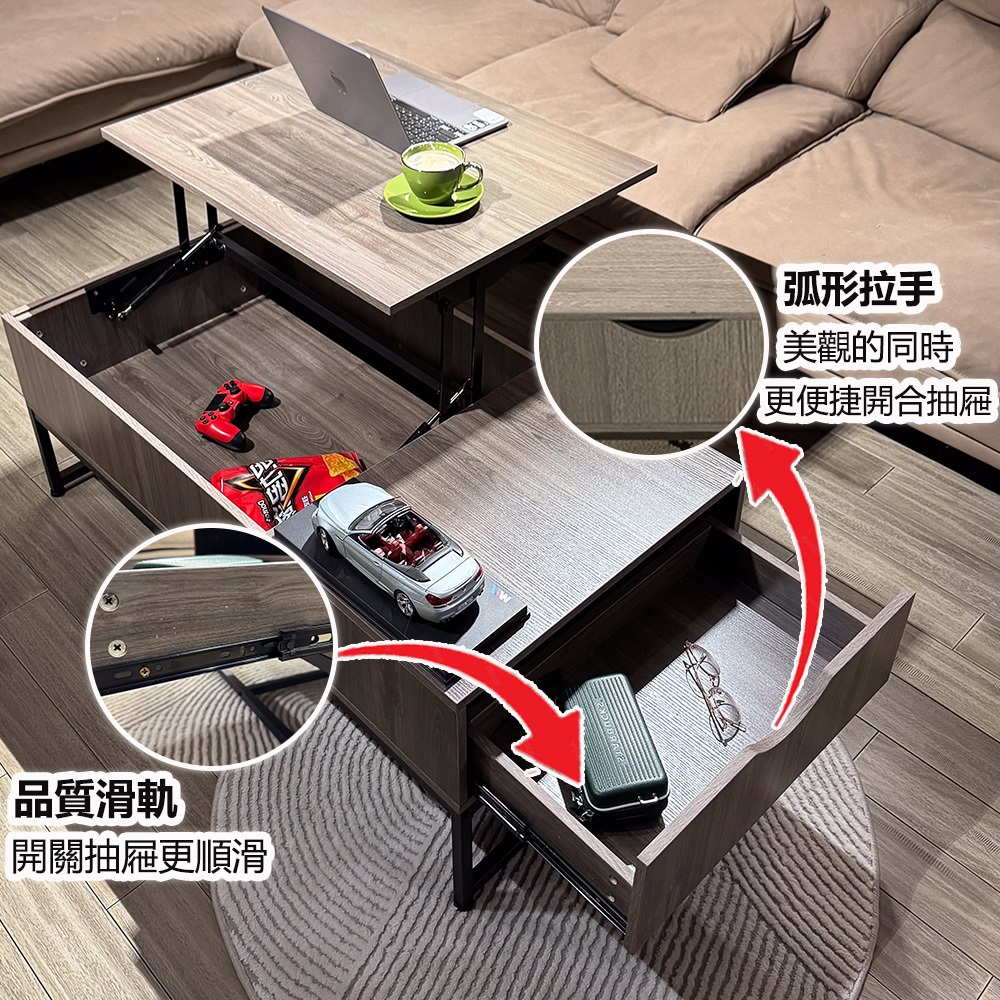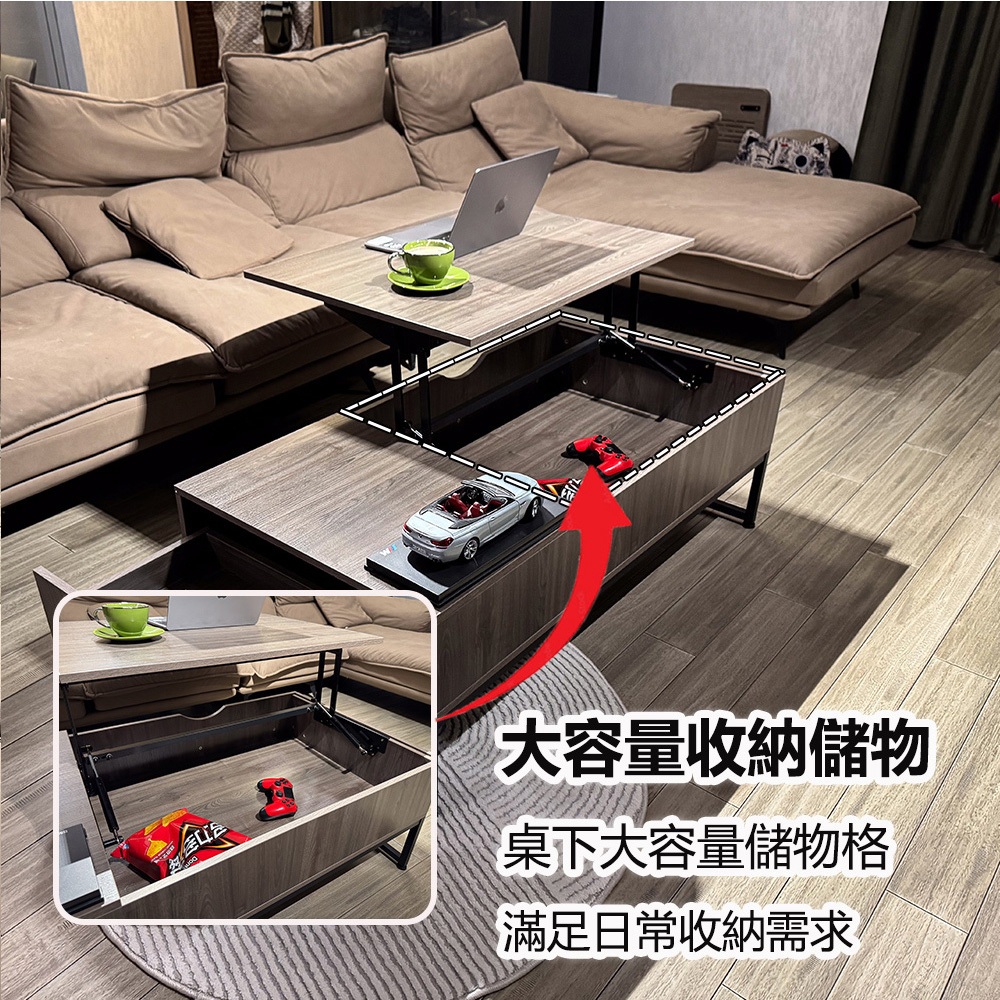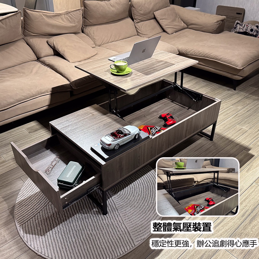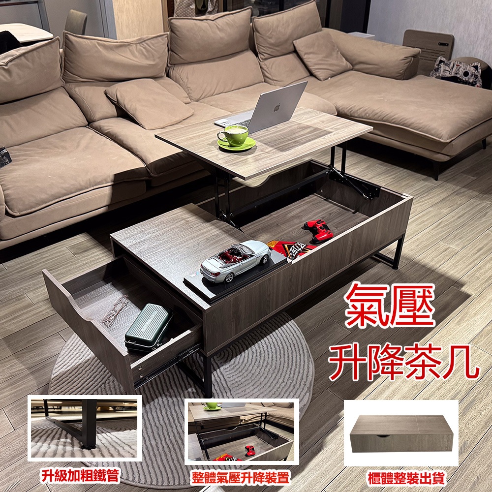 【E家工廠】升降茶几 茶几桌 邊桌 收納茶几 客廳茶几 客廳桌 客廳收納 咖啡桌 會客桌 茶几 免運 可貨到付款032-KC升降茶几(灰色)|404-100公分雙層升降茶几(咖啡色)|260-KC升降茶几(黑+木色)|123-XJ升降茶几(胡桃木)Desks & Tables E家工廠