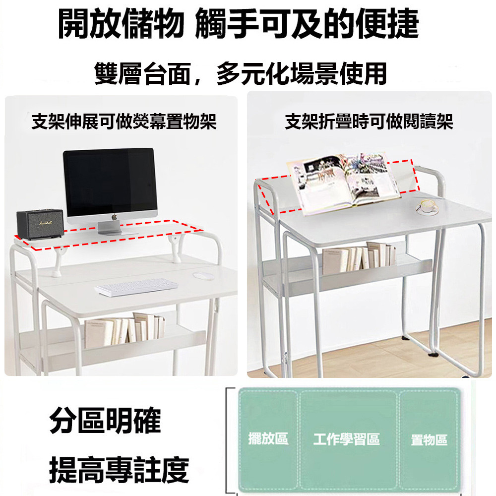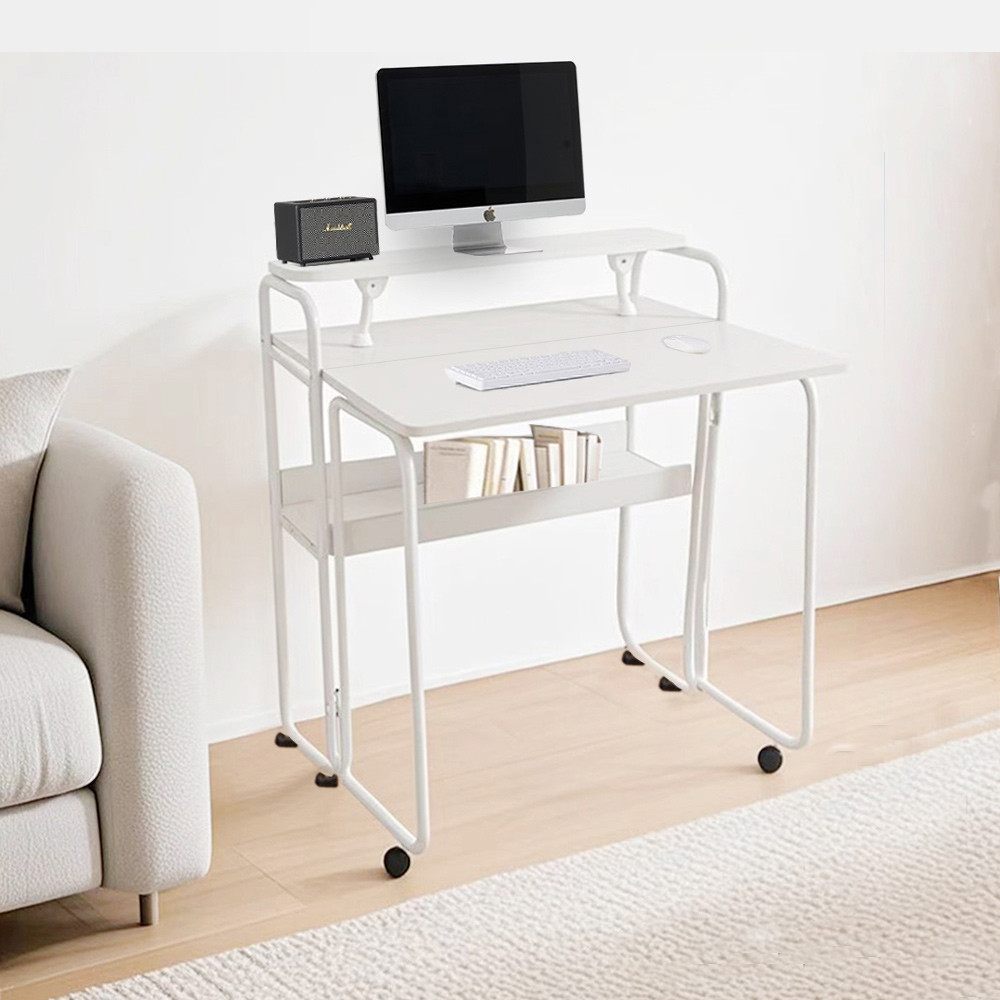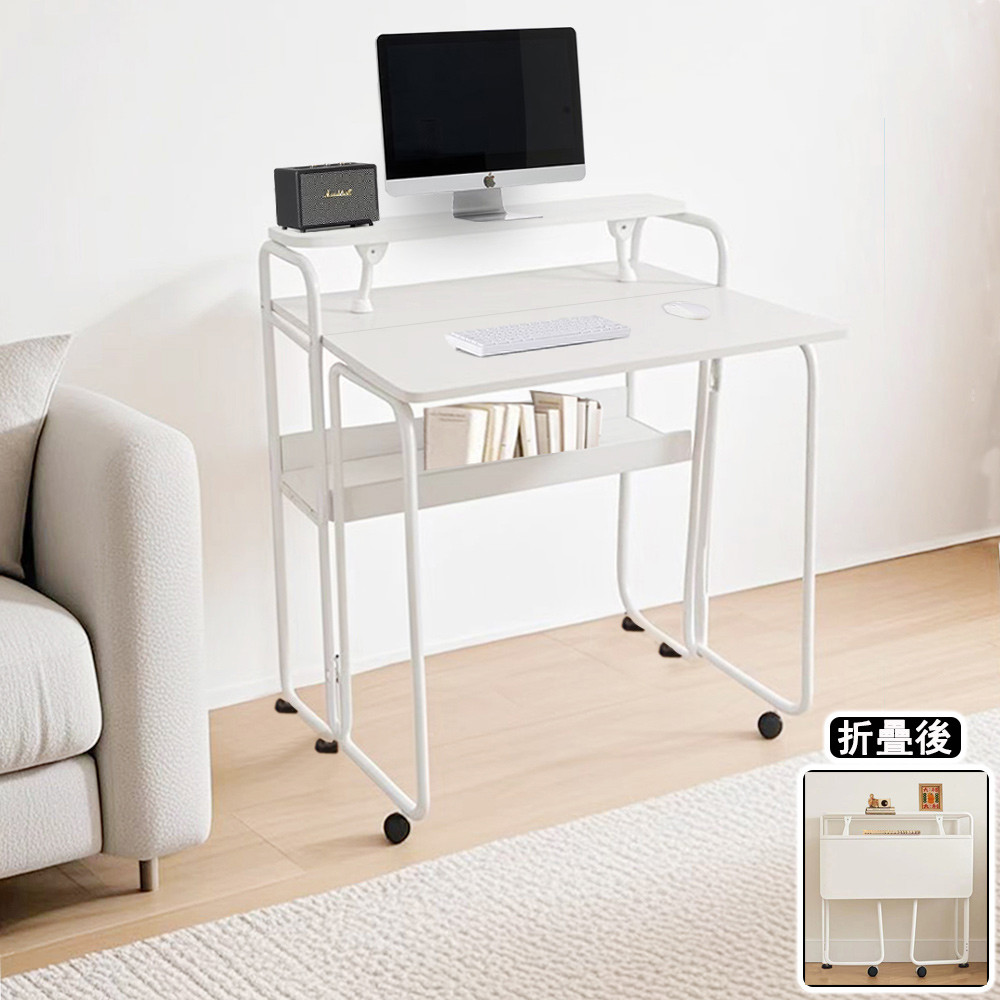 【E家工廠】80公分折疊桌 多功能電腦桌 可移動桌子 書桌電腦桌 辦公桌 簡約折疊桌 工作桌 免運 可貨到付款056-80公分折疊移動書桌(白色)Desks & Tables E家工廠