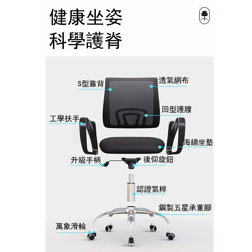 【E家工廠】辦公椅 電腦椅 椅子 椅 書桌椅 升降椅 電腦椅子 辦公椅子 會議椅 人體工學椅 靠背椅 免運 可貨到付款394-HB辦公椅(黑色)Benches, Chairs & Stools E家工廠