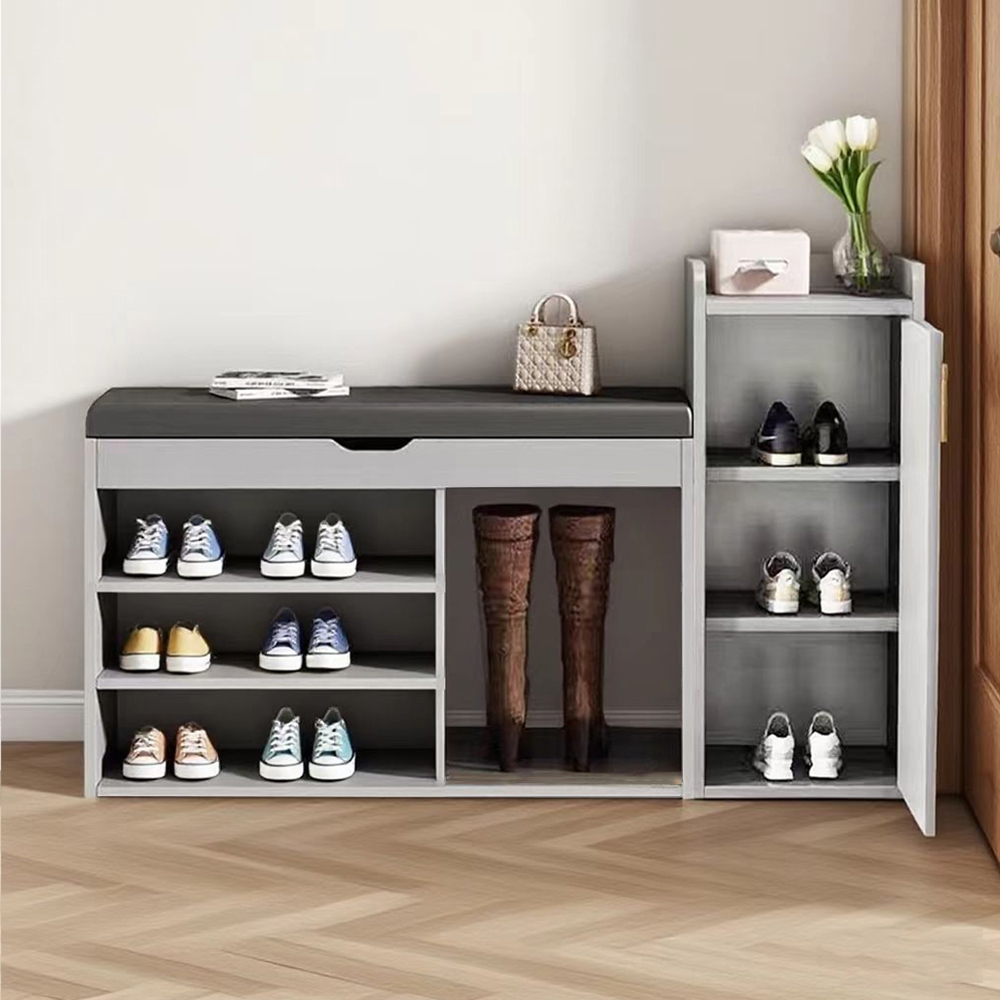 【E家工廠】穿鞋椅 換鞋凳 鞋櫃 80公分翻蓋收納穿鞋椅 鞋架 穿鞋椅櫃組合 穿鞋凳 收納凳 換鞋椅 免運 可貨到付款241-80公分穿鞋椅櫃組合(灰色)Benches, Chairs & Stools E家工廠