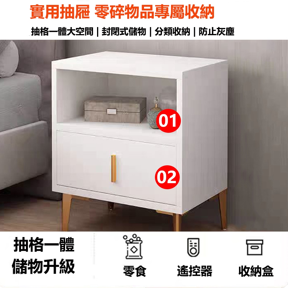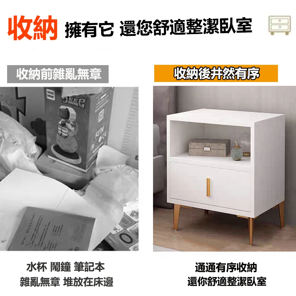 【E家工廠】床頭櫃 單抽/雙抽/三抽床頭櫃 簡易床邊櫃 收納櫃 床邊桌 小型邊桌 收納櫃 抽屜櫃 免運 可貨到付款135-KC单抽(45cm)灰色+金脚|142-KC單抽(45cm)白色+黑腳|168-KC單抽(45cm)白色+金腳Storage Boxes, Bags & Baskets E家工廠