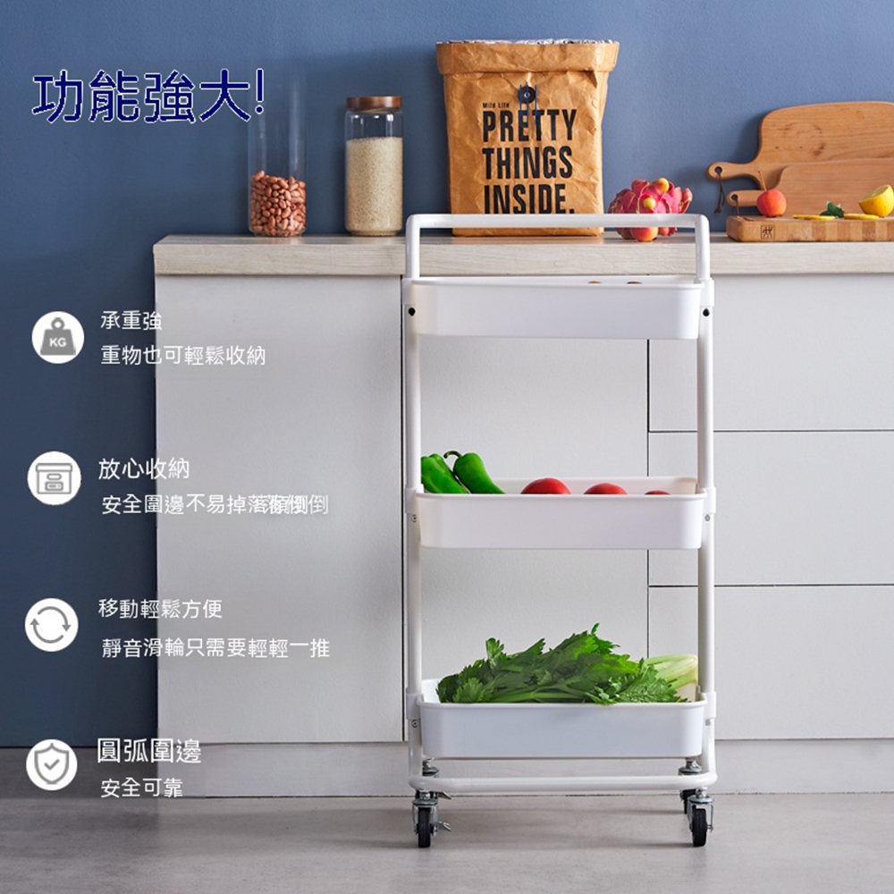 【E家工廠】收納推車 置物手推車 置物籃推車 置物架 廚房推車 廚房收納架 層架推車 三層推車 免運 可貨到付款376-HB收納架(白色)|400-HB收納架(黑色)Shelves & Racks E家工廠