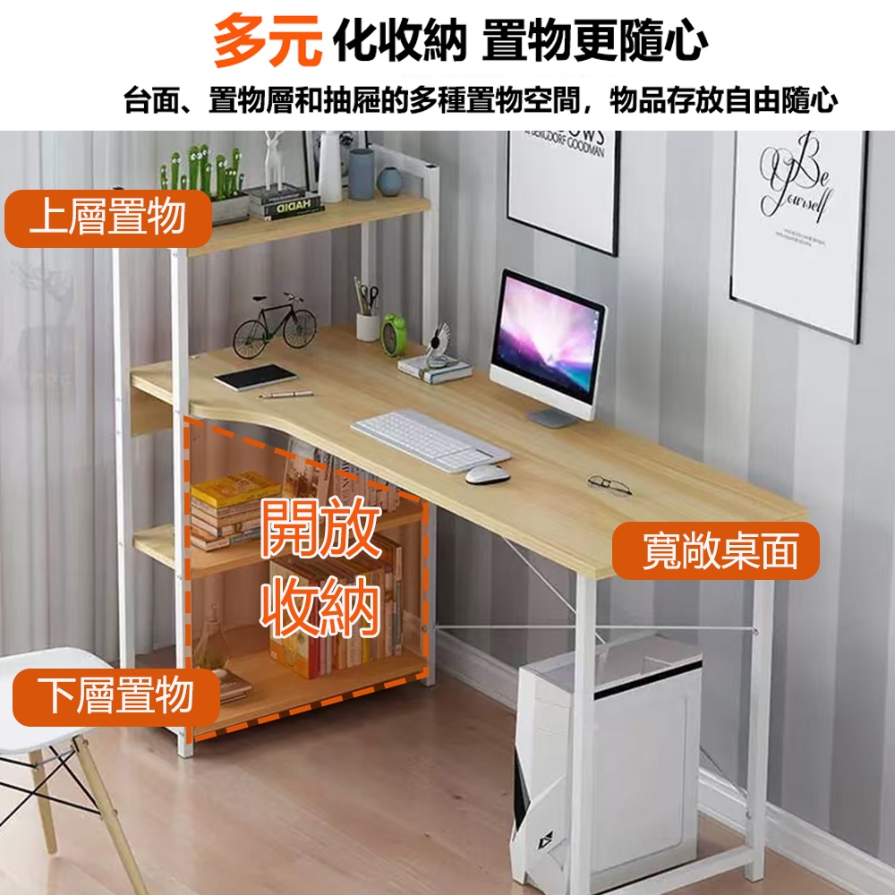 【E家工廠】 書桌 電腦桌 書桌置物架可左右互換 帶收納層架 多功能電腦桌 大桌面收納 工作桌 可貨到付款338-書桌帶置物架120公分(原木色)|329-書桌帶置物架120公分(黑色)Desks & Tables E家工廠
