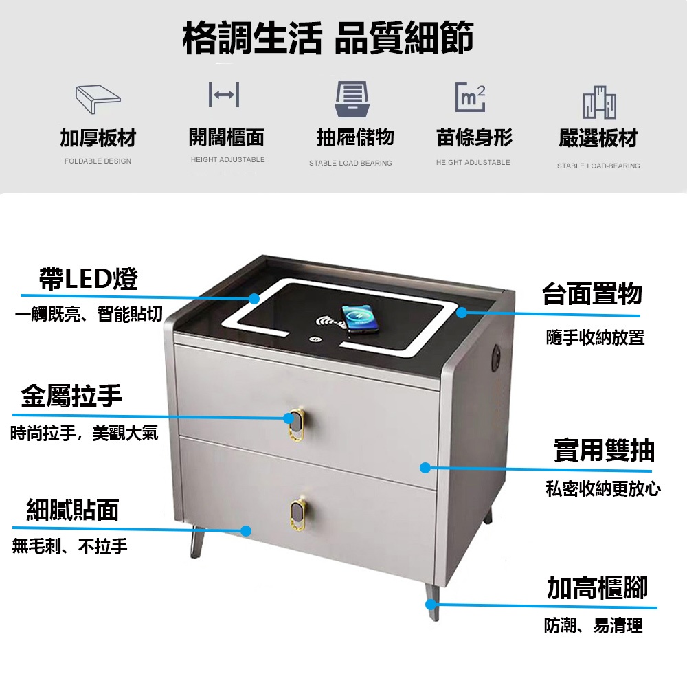 【E家工廠】免組裝智能床頭櫃 帶無線充電 多功能床邊櫃 抽屜櫃 臥室床頭櫃 50公分雙抽床頭櫃 免運 可貨到付款052-智能雙抽床頭櫃(藍灰色)|162-智能雙抽床頭櫃(淺灰色)|177-50公分雙抽床頭櫃(白色)Storage Boxes, Bags & Baskets E家工廠