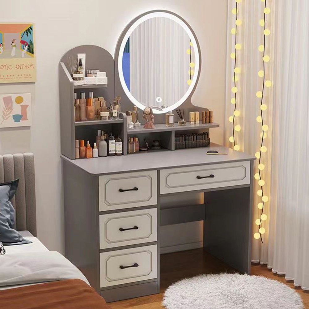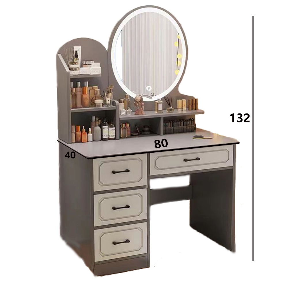 【E家工廠】帶燈梳妝台 化妝臺 化妝桌 梳妝桌 梳妝台 鏡台 收納化妝台 收納化妝桌 桌子 化妝椅 免運 可貨到付款068-帶燈梳妝台(灰+白)Desks & Tables E家工廠