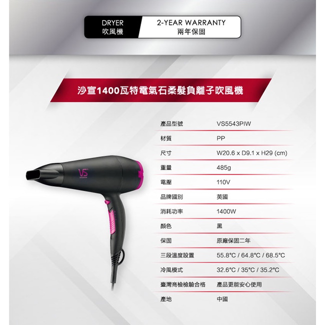 【英國 VS 沙宣】電氣石柔髮負離子吹風機 VS5543PIW【英國 VS 沙宣】電氣石柔髮負離子吹風機 VS5543PIWHair Tools Easy Life 淡水簡單生活館