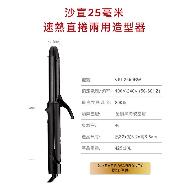 【英國 VS 沙宣】25mm速熱負離子直捲兩用造型器/直捲髮夾 VSI-2550BW【英國 VS 沙宣】25mm速熱負離子直捲兩用造型器/直捲髮夾 VSI-2550BWHair Tools Easy Life 淡水簡單生活館