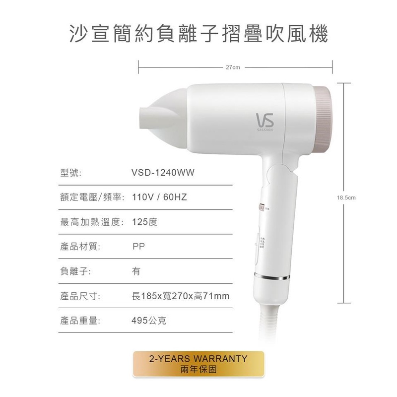 【英國 VS 沙宣】簡約負離子摺疊吹風機 VSD-1240WW【英國 VS 沙宣】簡約負離子摺疊吹風機 VSD-1240WWHair Tools Easy Life 淡水簡單生活館