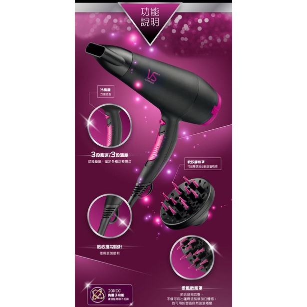 【英國 VS 沙宣】千萬負離子柔亮護髮吹風機 VS1820BWVS1820BWHair Tools Easy Life 淡水簡單生活館
