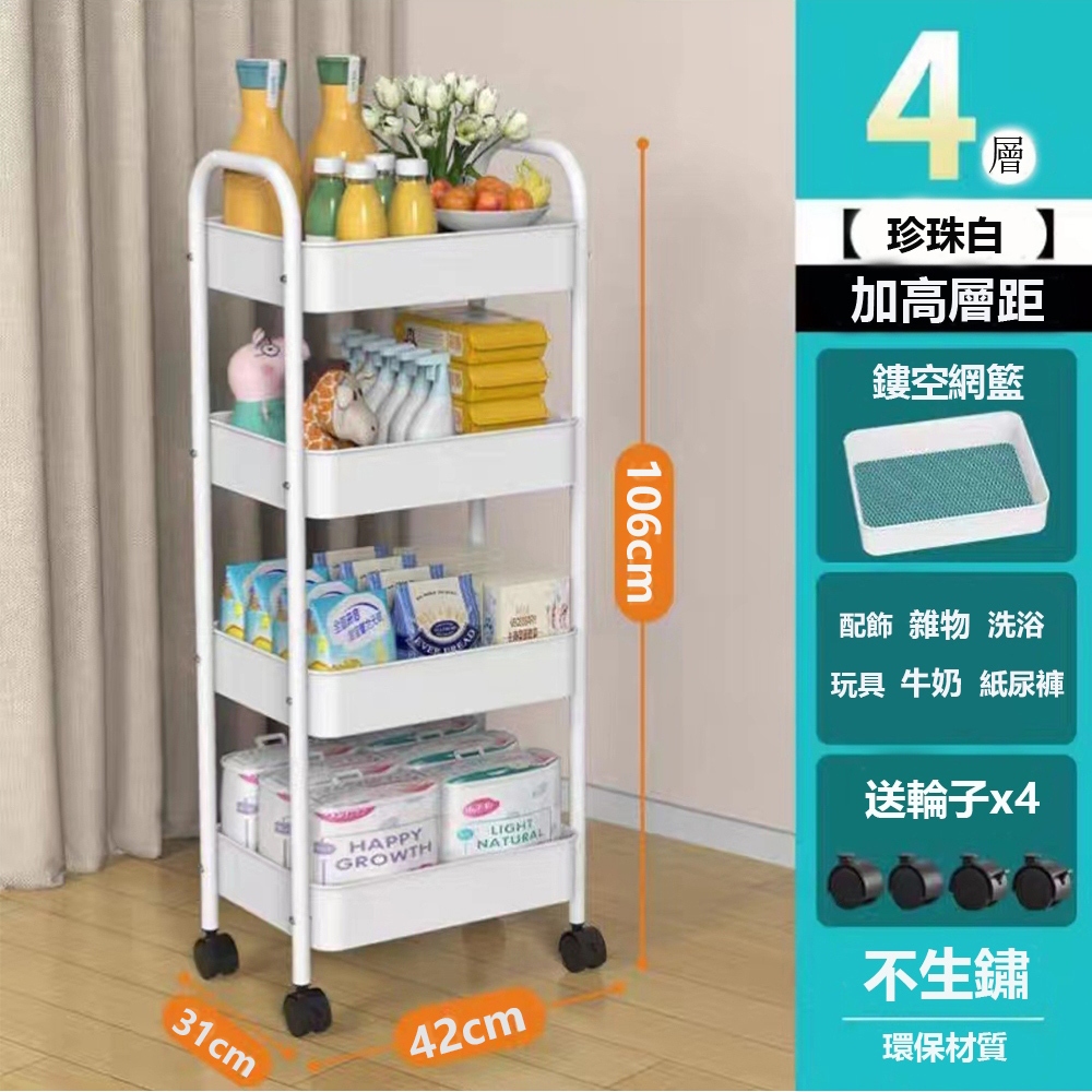 【E家工廠】 置物手推車 置物籃推車 置物架 廚房推車 收納推車 廚房收納架 層架推車 四層層推車 免運 可貨到付款
