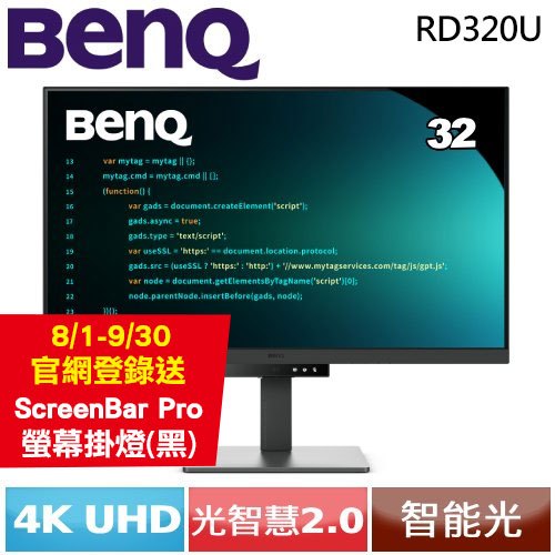 BENQ 32型 RD320U 4K USB-C 程式設計護眼螢幕 (含背光燈) 公司貨BENQ 32型 RD320U 4K USB-C 程式設計護眼螢幕 (含背光燈) 公司貨 BenQ 明基旗艦館 | 特約授權