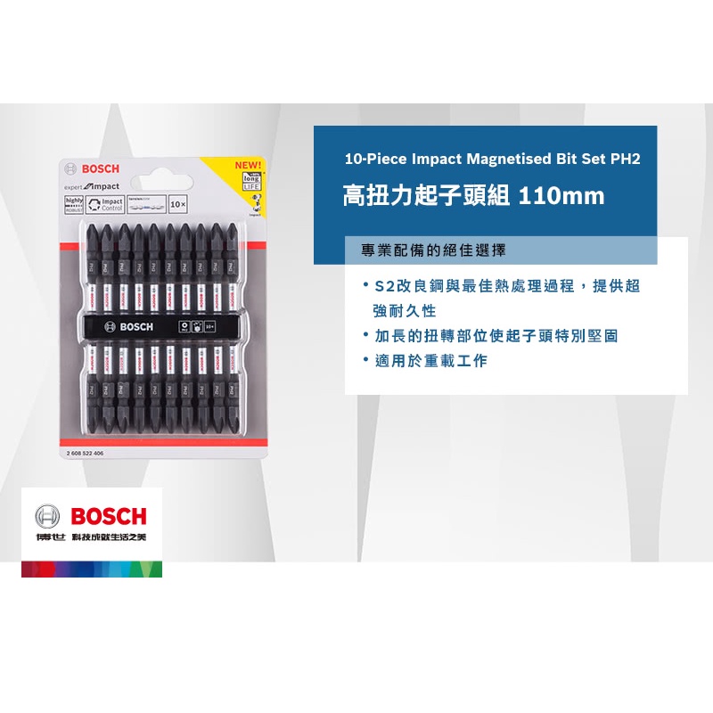 BOSCH 博世 高扭力PH2起子頭組(110mm 10支/卡)BOSCH 博世 高扭力PH2起子頭組(110mm 10支/卡)ToolsBOSCH 博世官方授權專賣店