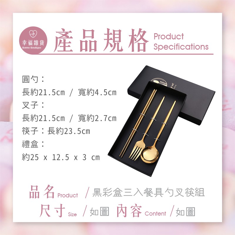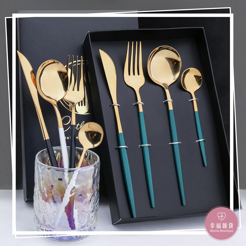 黑彩盒三入餐具組 / 不鏽鋼餐具套裝 葡萄牙 金色 西餐餐具 禮盒套裝 送禮 北歐風餐具組 三件套【B&B幸福雜貨】金|粉Cutleriesbonneboutique1218