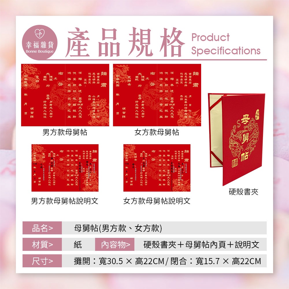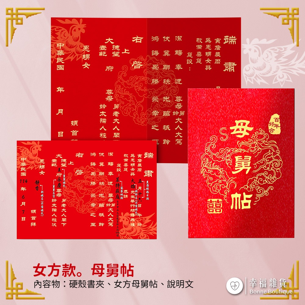 母舅帖 男方 女方【現貨】附書寫說明/ 邀請舅舅親家專用 喜帖喜帖 結婚用品【B&B幸福雜貨】男方款母舅帖|女方款母舅帖Cardsbonneboutique1218